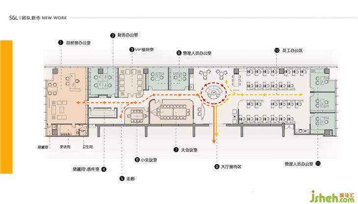 結(jié)合該企業(yè)的歷史背景以及它的企業(yè)文化,設(shè)計(jì)師對(duì)內(nèi)部的狹長(zhǎng)空間重新設(shè)計(jì),使其充分滿足了一個(gè)50人企業(yè)的的功能需求。