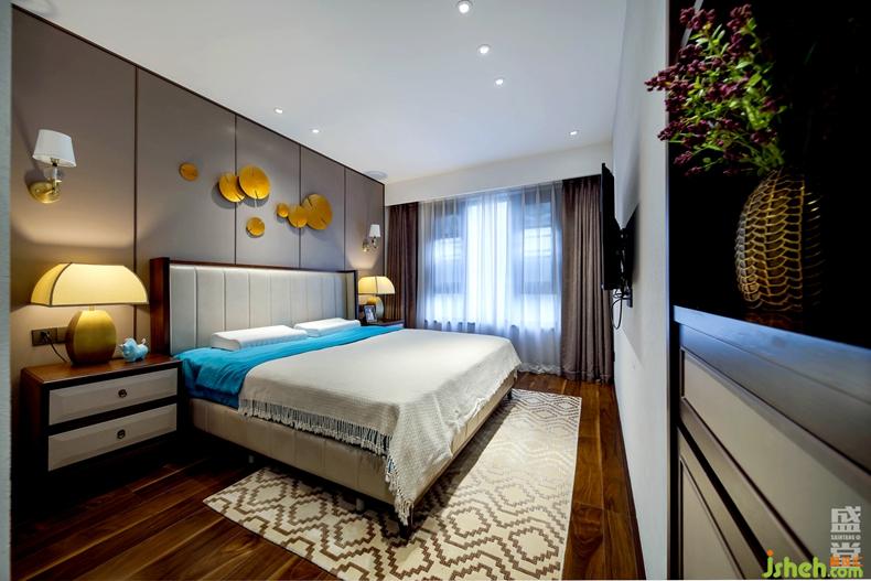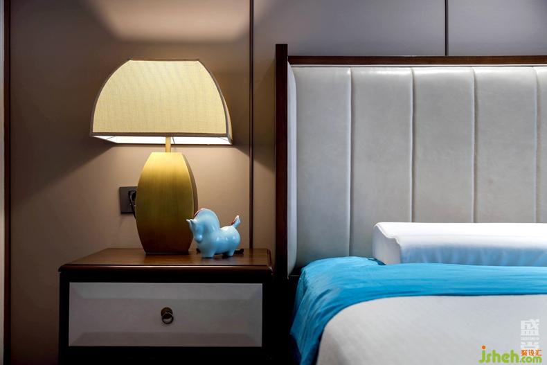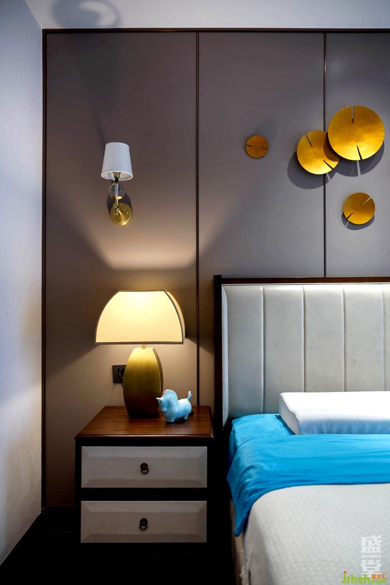 主人床采用的皮革面料被處理得極其柔軟,加上絲綢與絨面相間的床褥,搭建生活的品質感。文雅大氣的墻面硬包,點綴金色的飾品,不喧嘩而獨具格調。