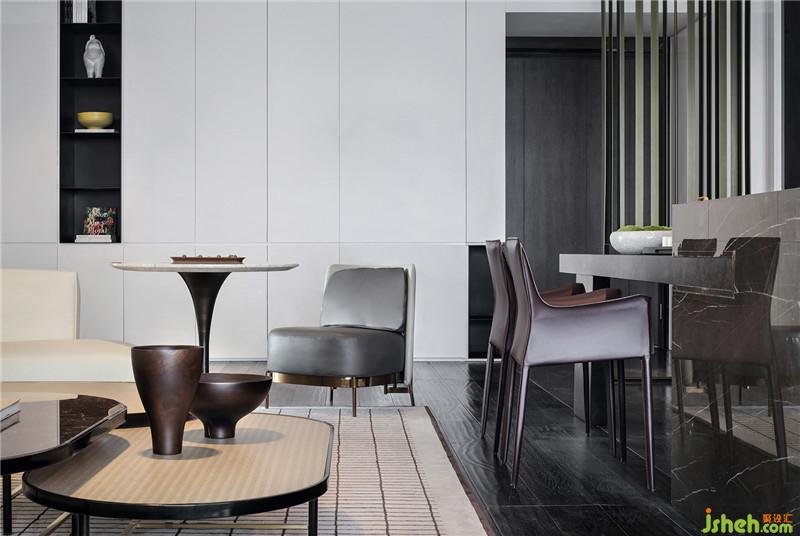 整體空間儒雅、寧靜,色調樸素而又溫馨和諧,講述了一種‘隱’于市的生活態(tài)度:聚‘富’、露‘貴’、透‘雅’、明‘賢’,能從清淡中感受出歡愉,必是將繁雜進行了過濾,這種境界便是‘簡’。