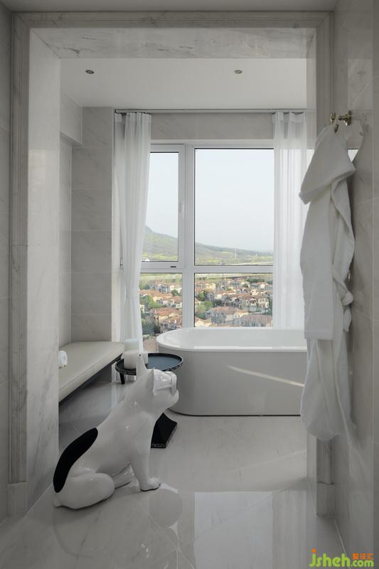 室內(nèi)設(shè)計(jì)師特意在主臥浴缸處配置了法國JARRE HD的藍(lán)牙音響,我們的女主人稱其為大白。泡澡的時(shí)候音樂無比重要,能讓人很快的放松下來,點(diǎn)上香薰,置于其中…