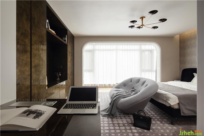 主人的氣質(zhì)里散發(fā)著身不由己的浪漫與義無反顧的執(zhí)著,這些UNCLE沈都考慮到了,在主臥打造時,拆除原有窗戶,合理規(guī)劃,讓光線傾瀉進來,月光似水,如詩一般?;⌒伍T套的漸入,讓整個空間頓時變得柔軟起來…別墅裝飾