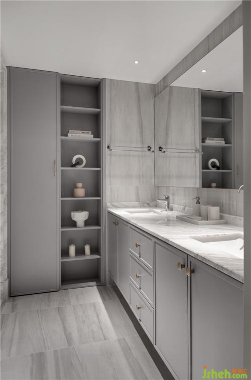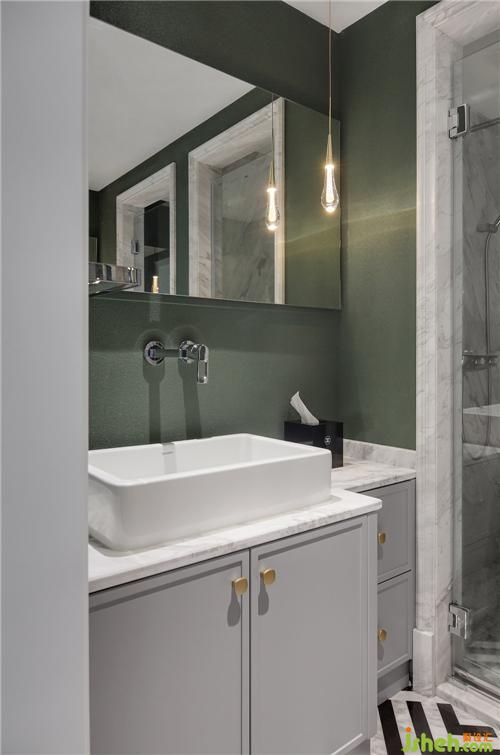 主衛(wèi)干濕分離,極具私密性。南京別墅裝飾與臥室背景墻、窗簾所運(yùn)用的墨綠色相呼應(yīng),斑馬紋地磚的植入也凸顯一絲俏皮。擁有八個(gè)置物抽屜的洗漱柜有著超強(qiáng)的收納空間,充分滿足女主人放置護(hù)膚品的需求。