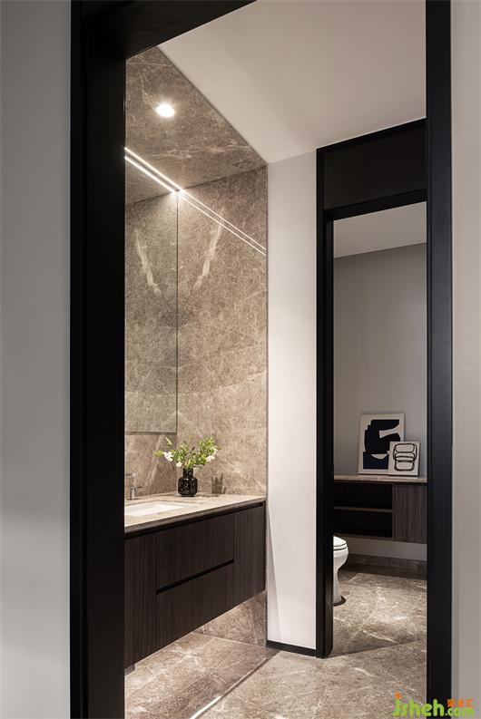 衛(wèi)浴空間 干濕分離鏡面吊頂?shù)闹萌胗诓唤?jīng)意中放大空間呈現(xiàn)出不同的驚喜和體驗(yàn)在點(diǎn)滴中提高居住舒適度與品質(zhì)感