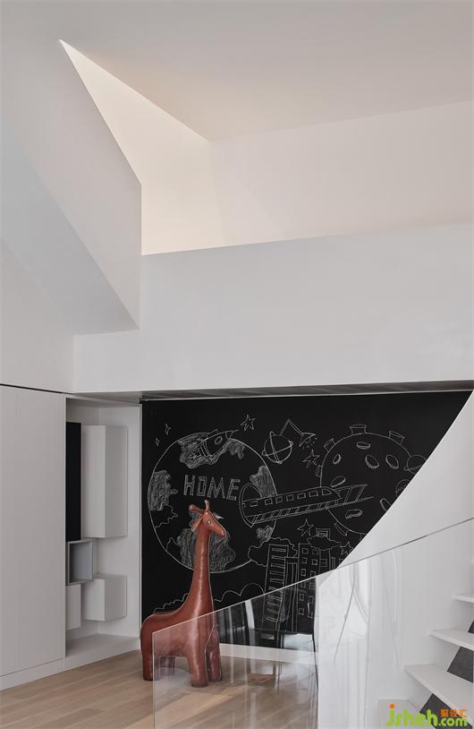 樓梯下口處,為他們打造出繪畫天地,實為點睛之筆。