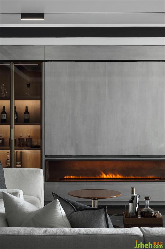 壁爐上方電動門悄然打開,
