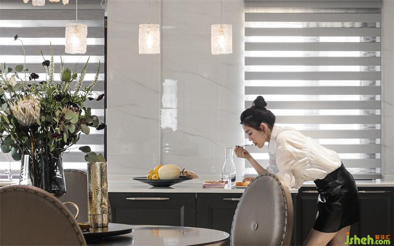 中西廚以簡潔中性的灰色調(diào)為主