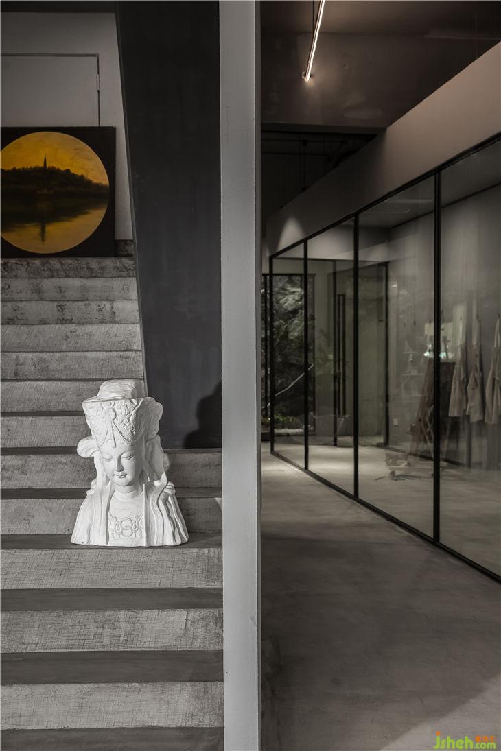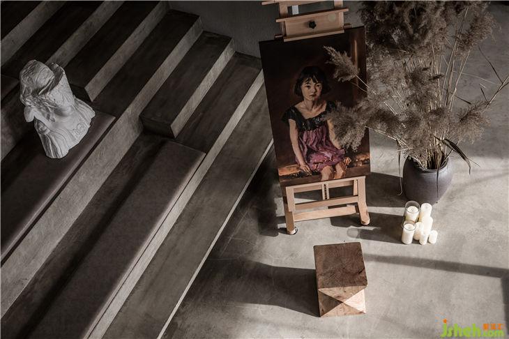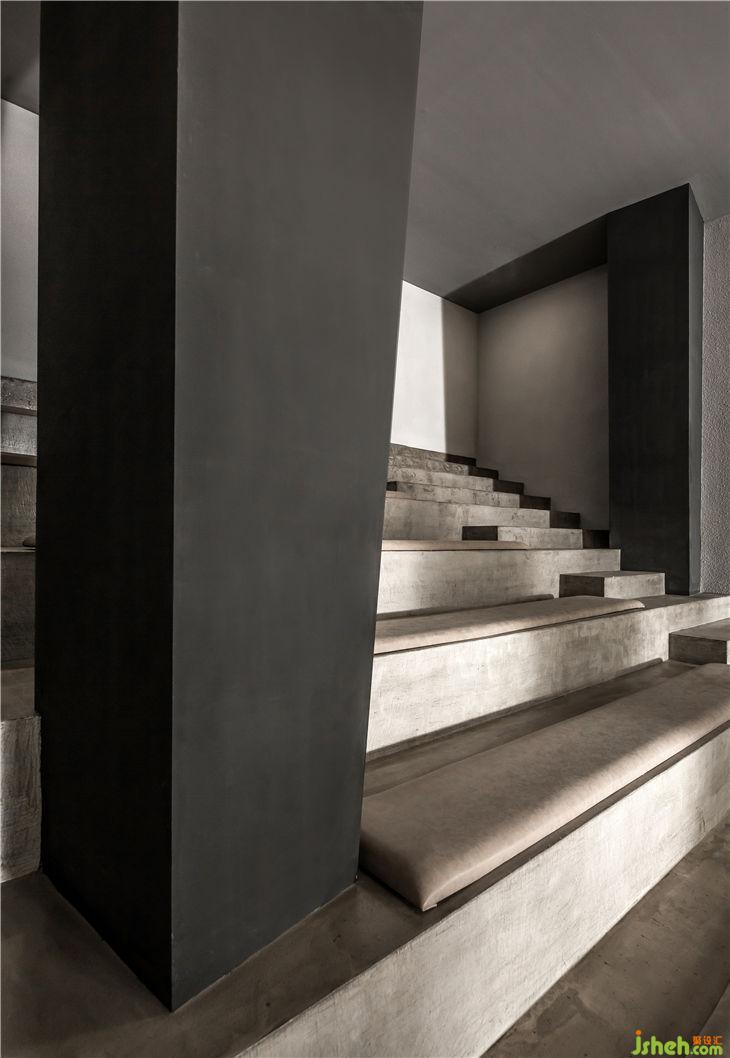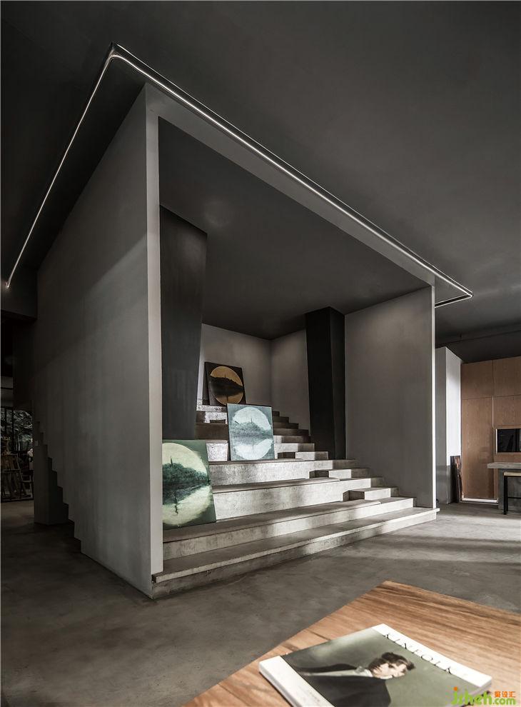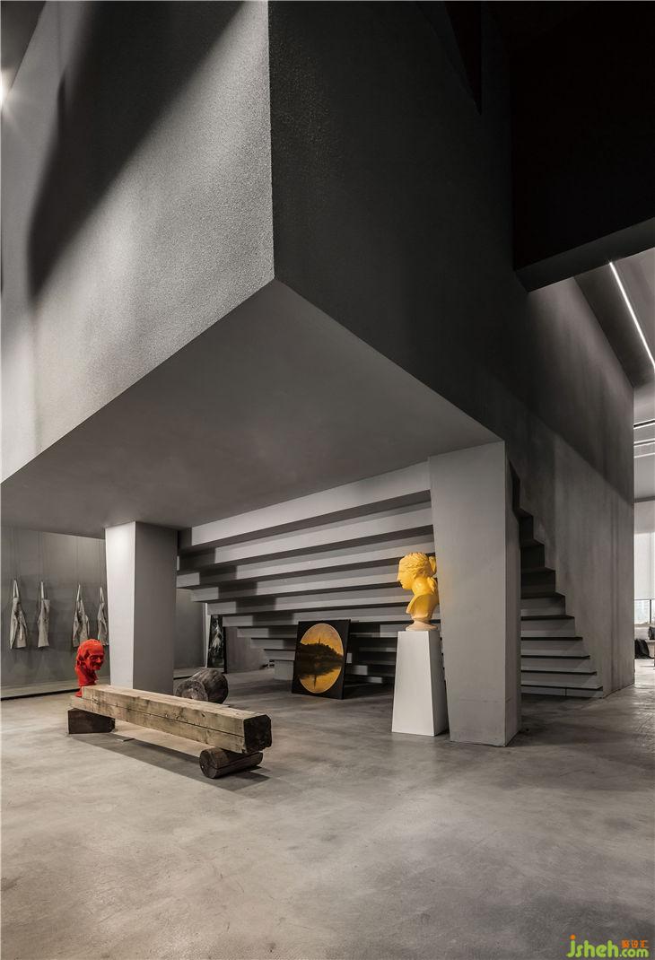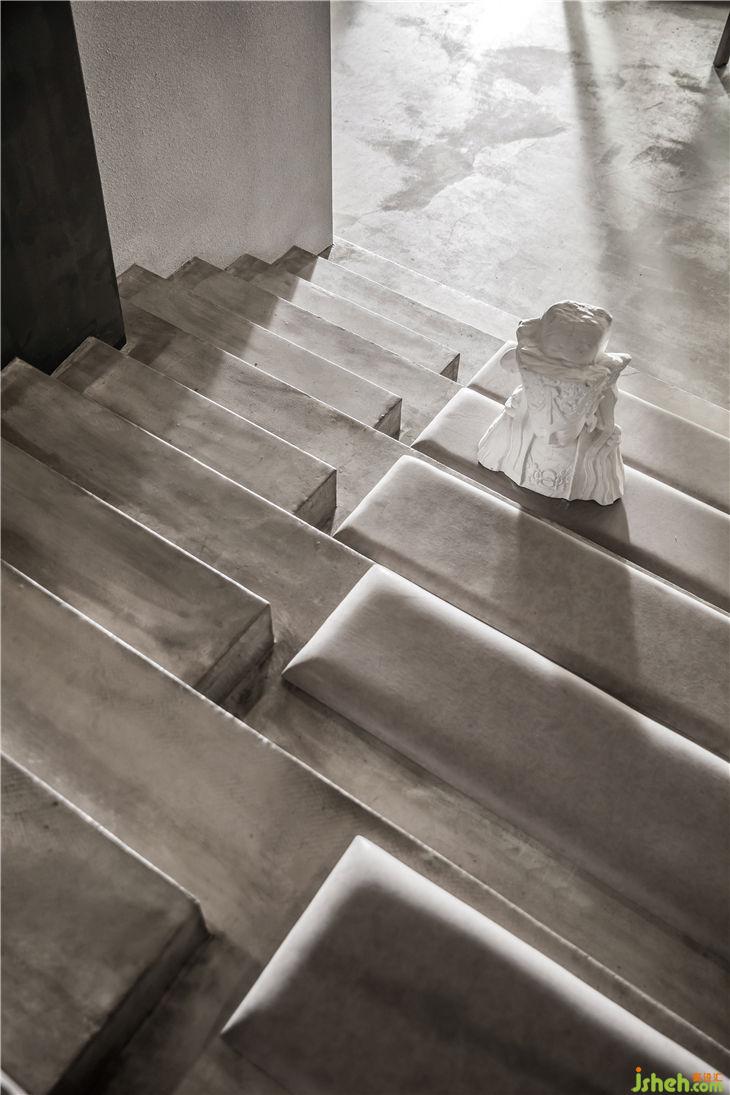 “大盒子”背部保留了原本的階梯形狀, 加深了整個(gè)空間視覺(jué)的深度,增加了空間的層次感 。在下方可以擺放藝術(shù)品,營(yíng)造出濃厚的藝術(shù)氣息。