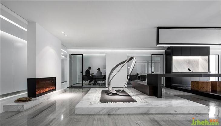 騰邦國(guó)際辦公室建筑面積1600㎡,主要采用石材與木質(zhì)材料??臻g設(shè)計(jì)中引入許多旅行元素,我們希望空間更加有趣,更貼合企業(yè)的文化,為此營(yíng)造一個(gè)自由,簡(jiǎn)單,輕松的空間,讓辦公變得像旅游一樣能夠享受其中的樂趣。設(shè)計(jì)師為不同空間都融入了一場(chǎng)不同主題的旅行,彷佛有著一段段說不完的故事。前臺(tái)造型為飛機(jī)機(jī)翼,背景傾斜的墻體,黑色的體塊穿插,在極簡(jiǎn)的空間中顯得妙趣橫生。用簡(jiǎn)潔的表現(xiàn)形式來滿足人們對(duì)辦公空間環(huán)境感性的、本能的和理性的需求,展現(xiàn)了現(xiàn)代簡(jiǎn)約風(fēng)格對(duì)材料和質(zhì)地的極致追求,透露著“少即是多”的設(shè)計(jì)哲學(xué)。
