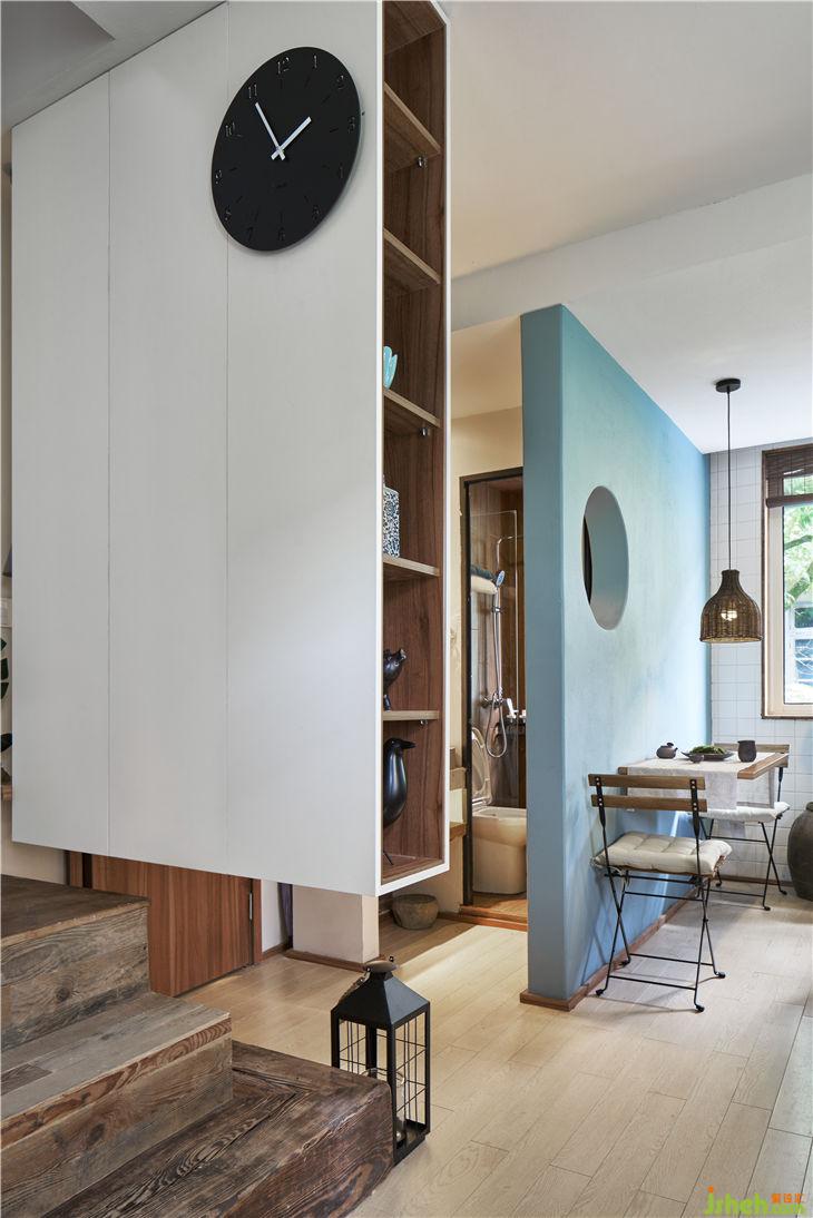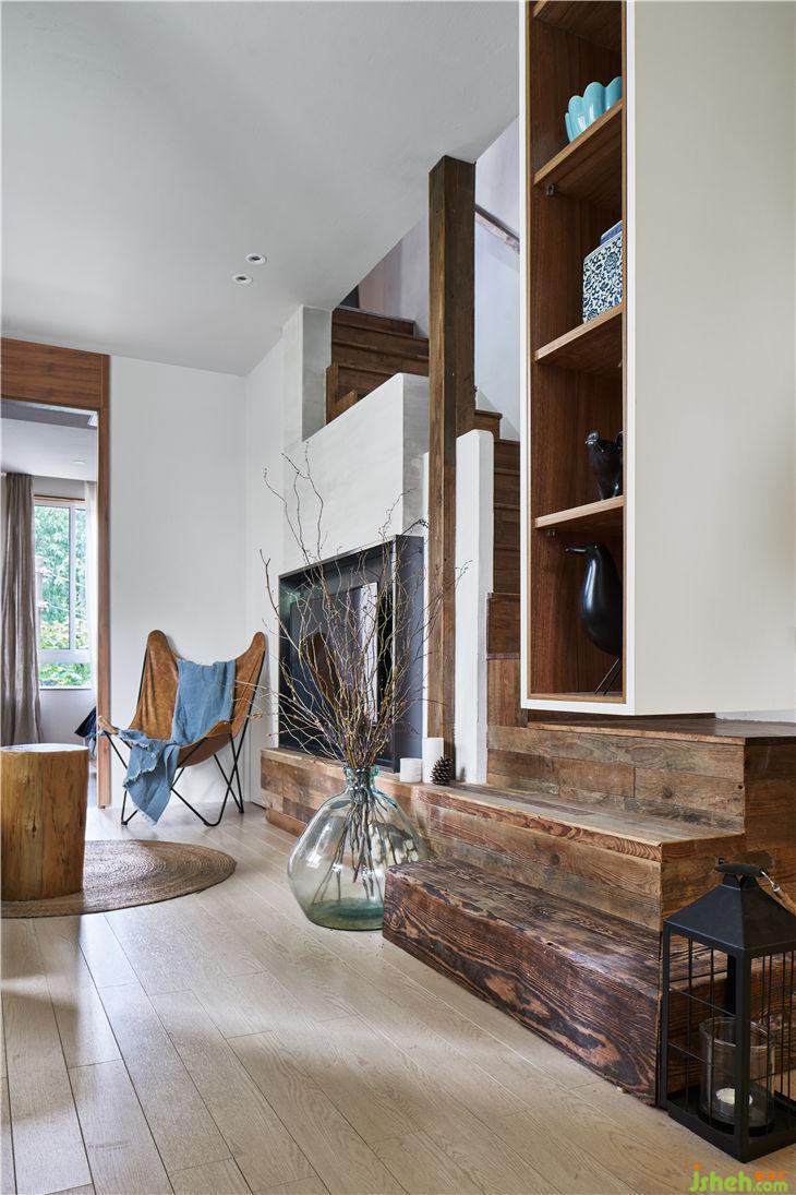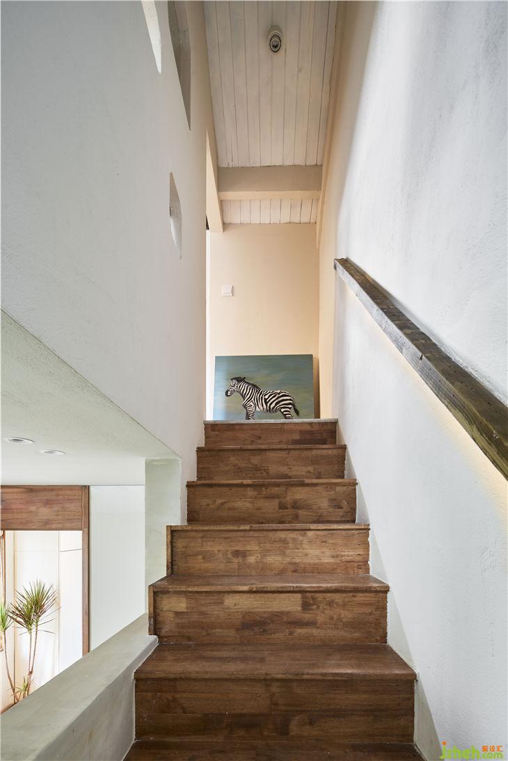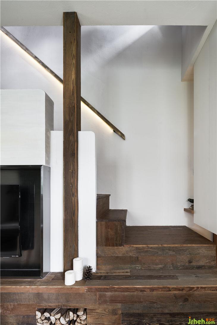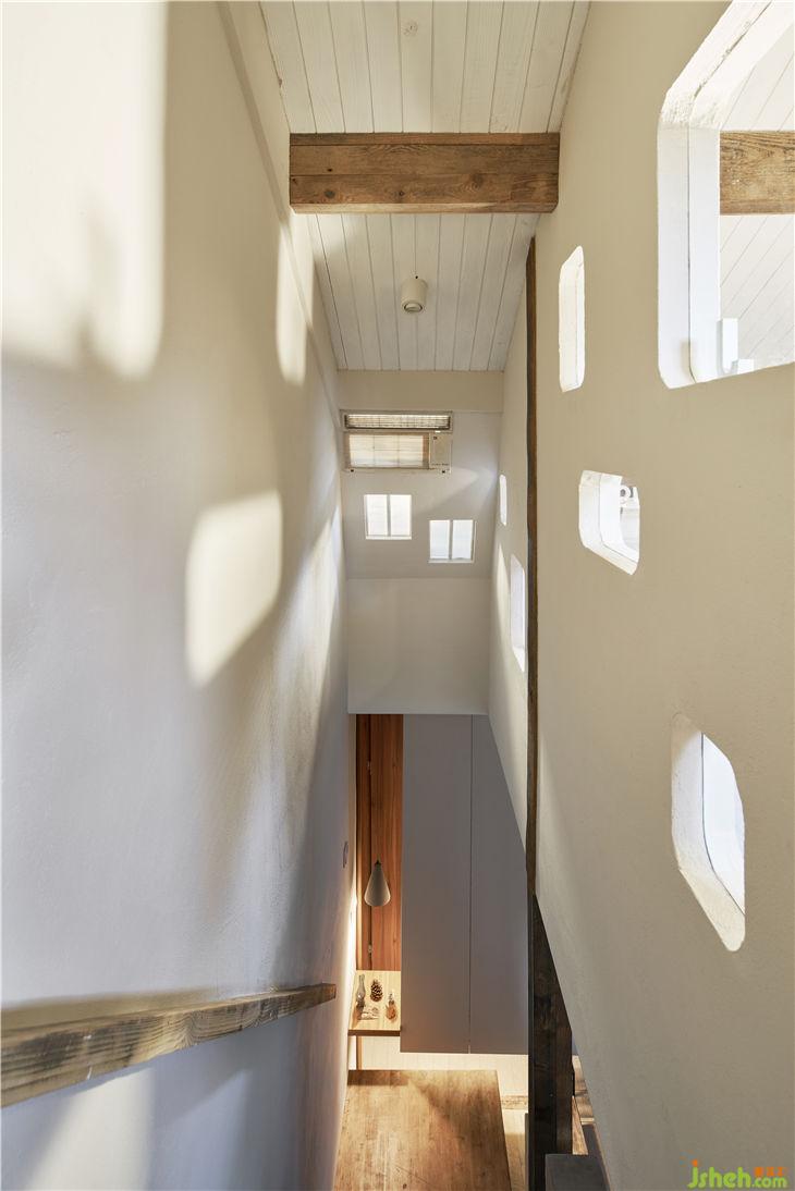 入戶通過(guò)一個(gè)懸空的體塊,加強(qiáng)體塊感并且多功能儲(chǔ)藏。通過(guò)體塊間的穿插實(shí)現(xiàn)客廳與樓梯間的對(duì)話,重新規(guī)劃的樓梯區(qū)域更像是一條時(shí)光隧道,充滿年代的回憶。布滿歲月痕跡的老木頭與當(dāng)代不斷碰撞,現(xiàn)代建筑語(yǔ)匯與低度設(shè)計(jì)空間的對(duì)話。閣樓重新做了利用,增大了開窗,做了大型儲(chǔ)物的套房。建筑上最大化采光和通風(fēng),營(yíng)造愉悅自在的生活狀態(tài)。