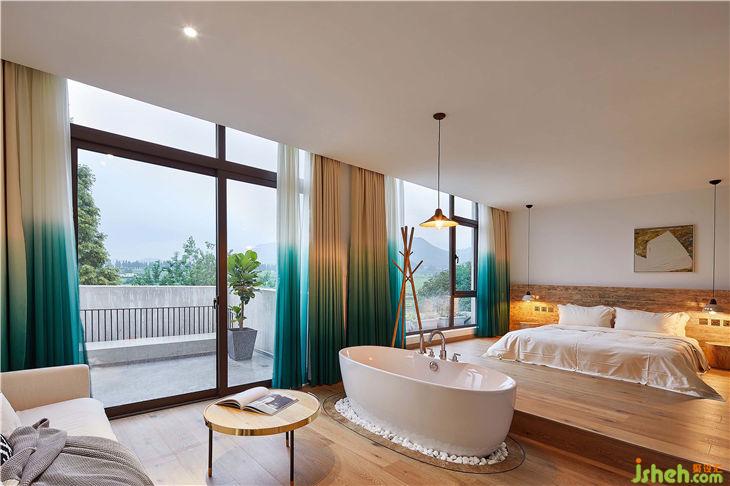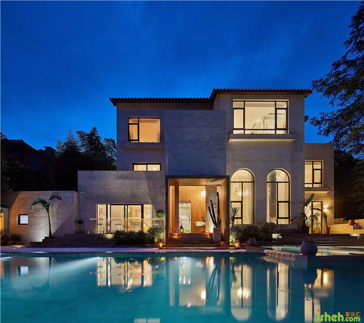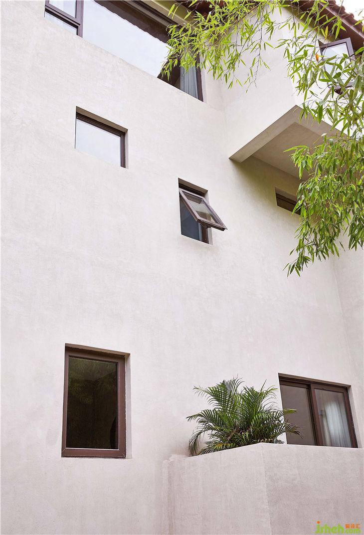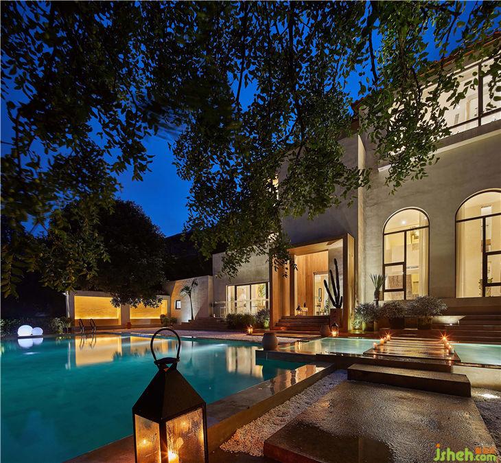 汀步式走道設(shè)計(jì)。在庭院間有一片景觀水池和一片泳池,在穿插的水池間橫置一個(gè)步道,設(shè)計(jì)師意在放緩行人的腳步,伴隨著涓涓的水流聲,感受最純粹的自然風(fēng)情。