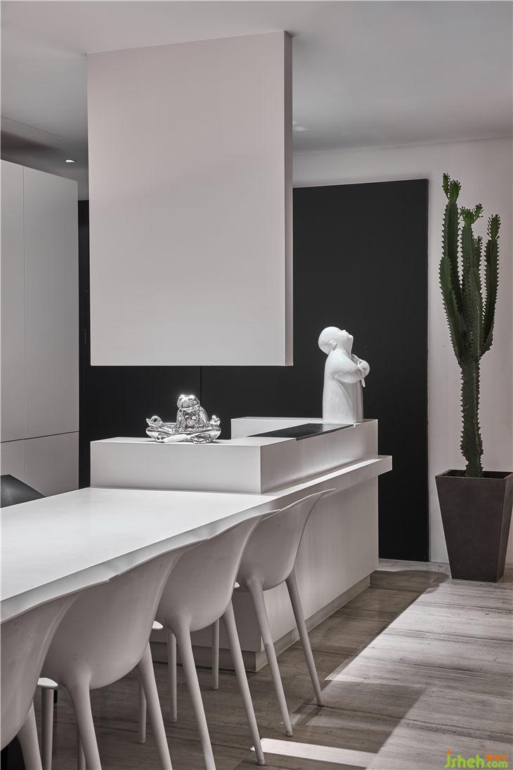 入戶門就像一個(gè)大“黑盒子”,走入其中,里與外頓時(shí)產(chǎn)生出空間交錯(cuò)感。小開(kāi)窗的設(shè)計(jì)能夠讓光線穿透墻面,頂部燈光灑向四周,空間變得更加富有構(gòu)成感,一眼便彰顯出了個(gè)性。