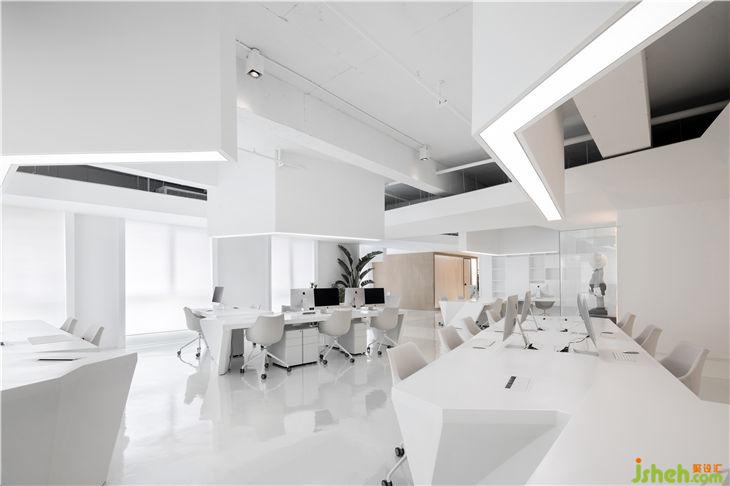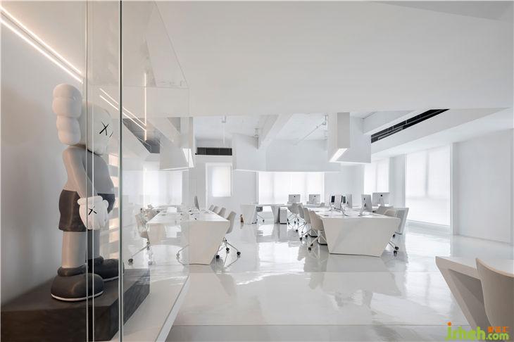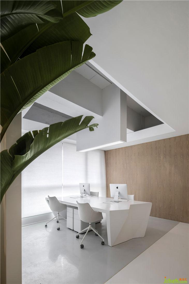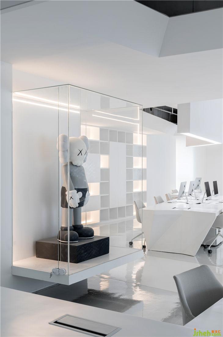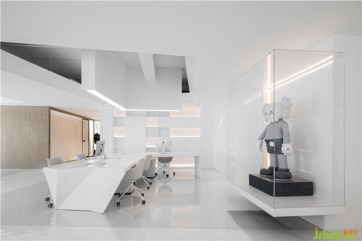 走廊兩邊設(shè)計成兩個裝有玻璃的木頭盒子,分別是直播區(qū)與會議區(qū),與辦公室的簡潔設(shè)計進(jìn)行過渡,讓空間變得不那么沉悶。
