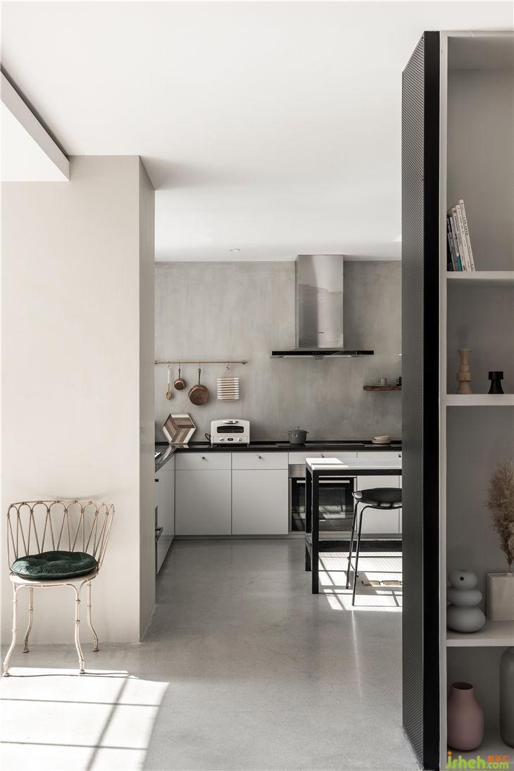 我們希望整個(gè)空間展現(xiàn)出純粹質(zhì)樸的味道,同時(shí)又具備足夠的自然氣息,在墻體一側(cè)留出一個(gè)空間,將木質(zhì)隔板與陶藝制品完美地結(jié)合,仿佛在空間中進(jìn)行溫柔的對(duì)話。