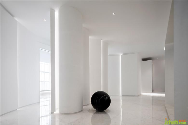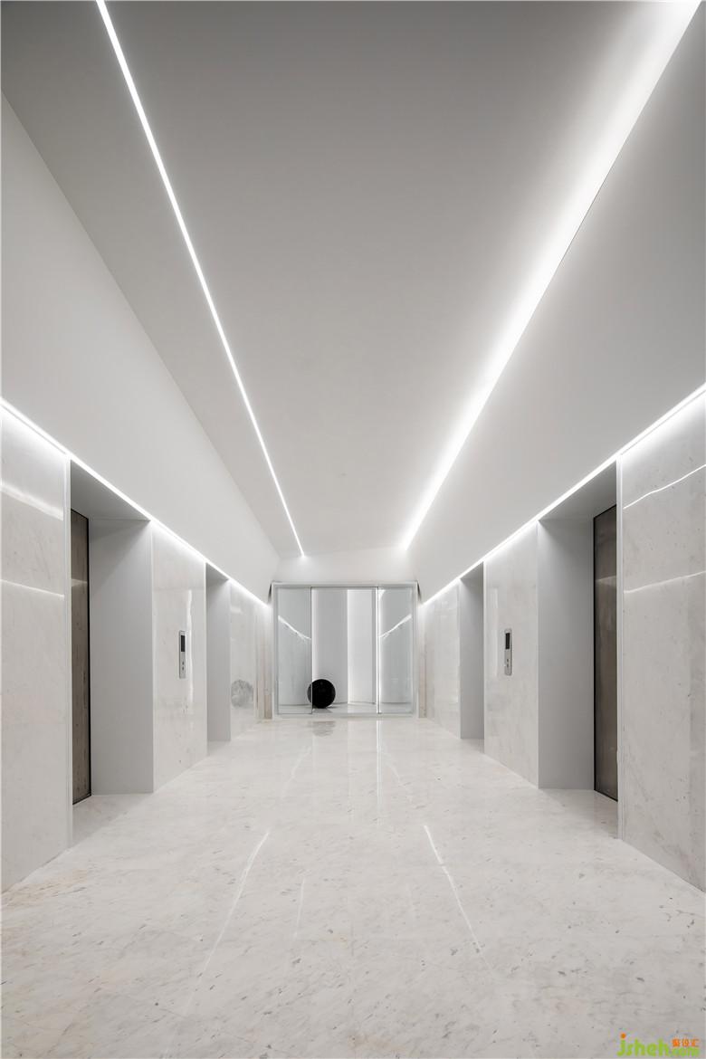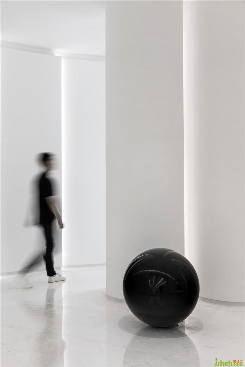 將電梯間與入口處的概念區(qū)設(shè)計成一個整體,希望能和辦公空間氛圍更加融合。概念區(qū)白色的曲面過道造型墻由果核的切片抽象而來,仿佛是在一個果子間穿梭走動,隱隱地傳達出了品牌的概念與故事。