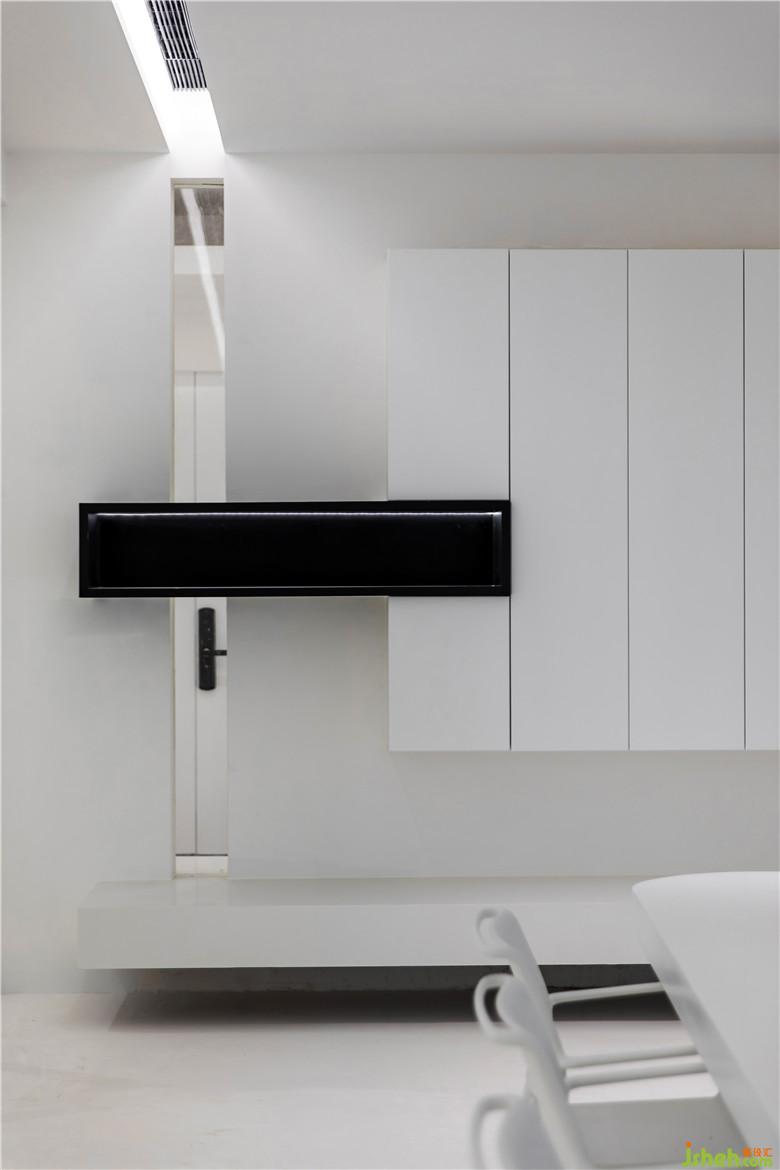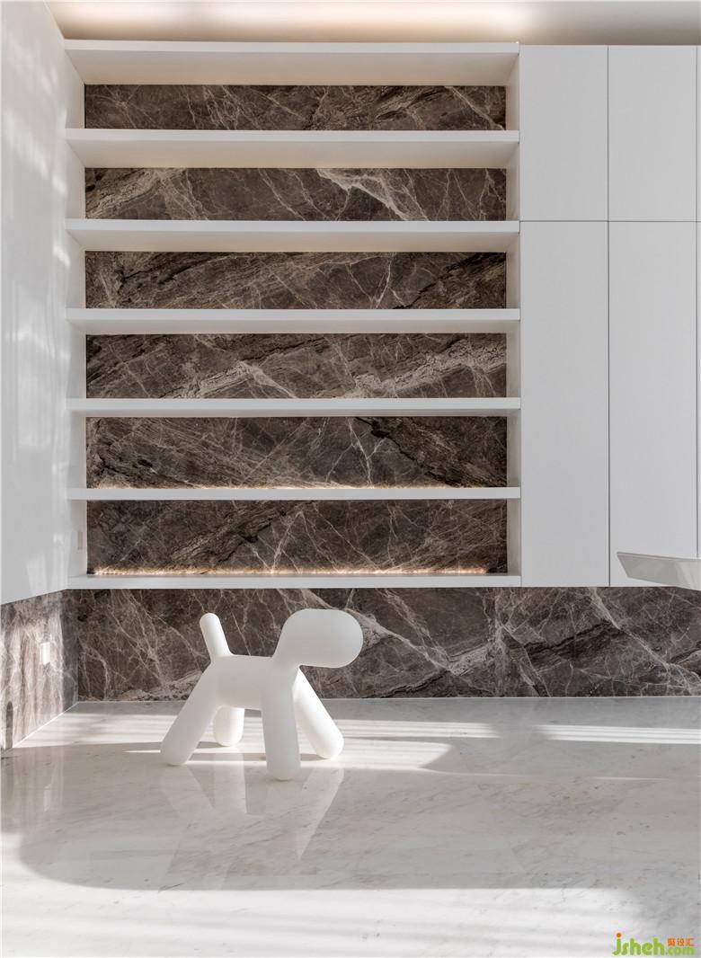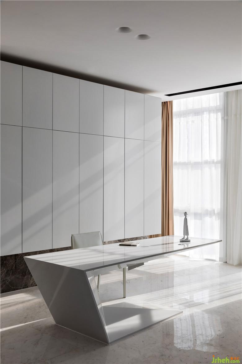 兩間辦公室也以暖色系為主,白色柜體與大理石塊面相互打通,傳達(dá)出互為共生的理念,并且滿(mǎn)足了文件的收納需求。