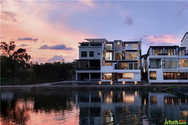 「駐·85民宿」位于江南地帶麗水的古堰畫鄉(xiāng)中。民宿被一片湖光山色圍繞,這里早晨薄霧蒙蒙,一葉竹筏在湖面泛起,如仙境般充滿詩意,而到了夜晚,霞光將天空染成了紅色,時(shí)光變得靜謐柔和。