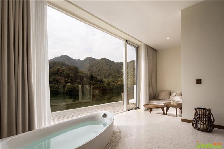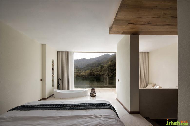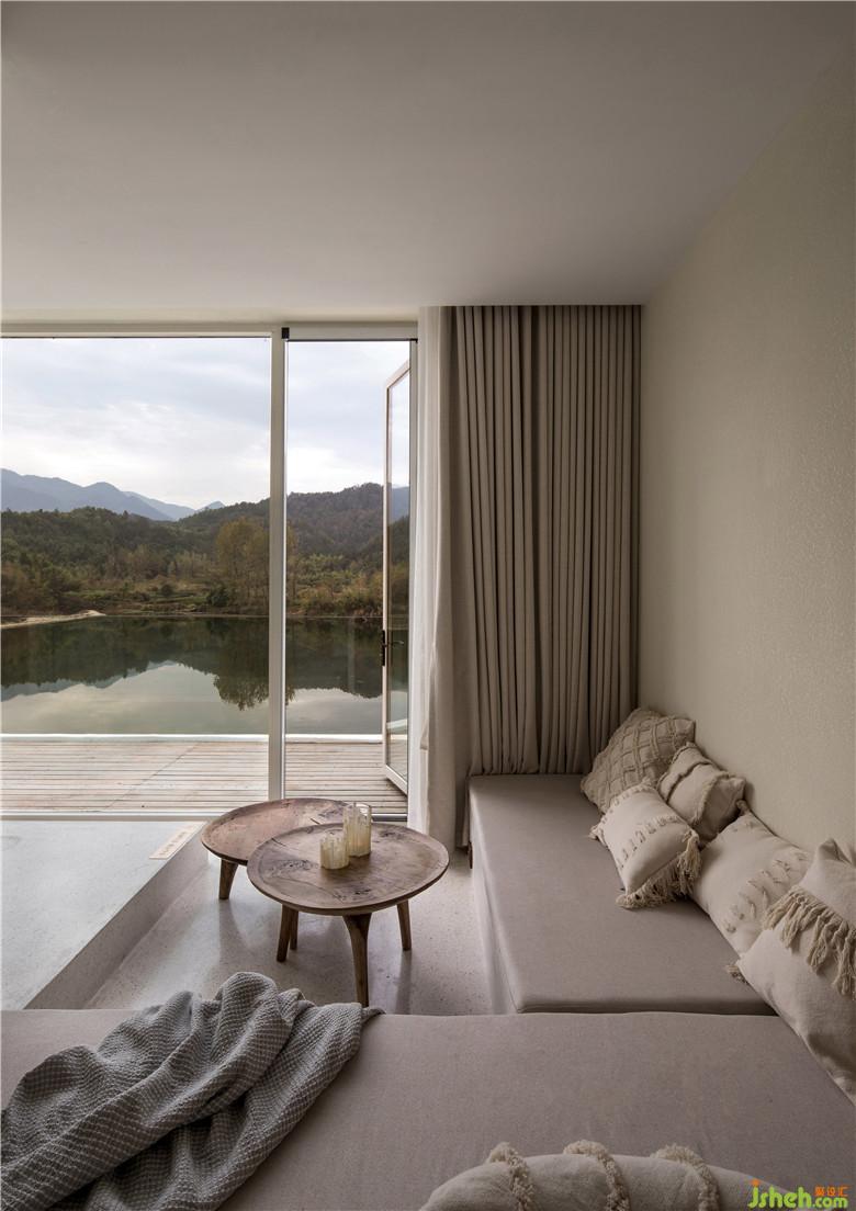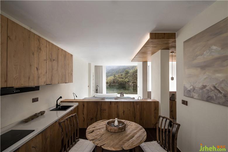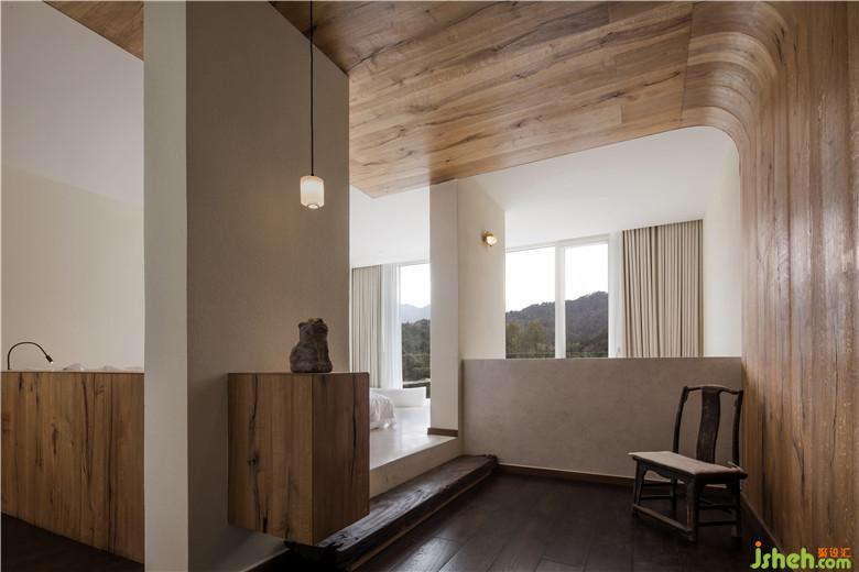 材質(zhì)上選用了暖色的涂料與木質(zhì)搭配,讓空間呈現(xiàn)出溫暖自然的格調(diào)。身處的空間變得純粹、寧?kù)o,能夠讓人瞬間忘掉一切煩惱,盡情欣賞眼前的好山好水。
