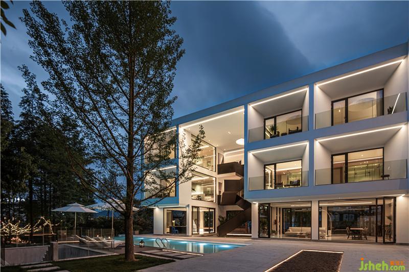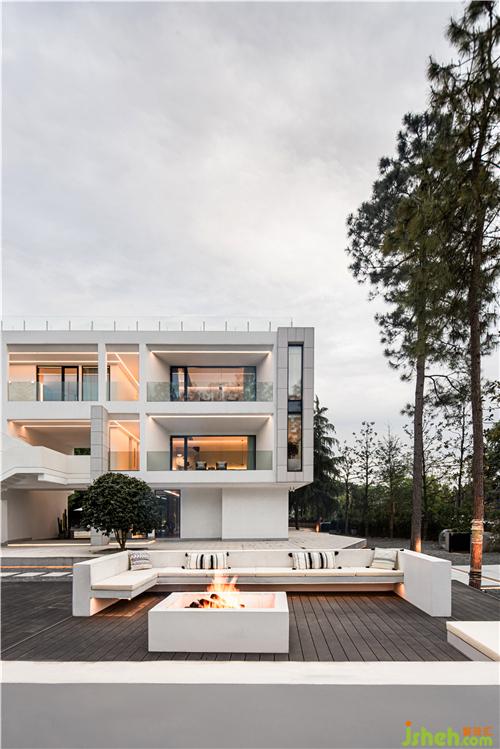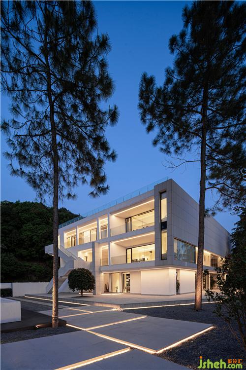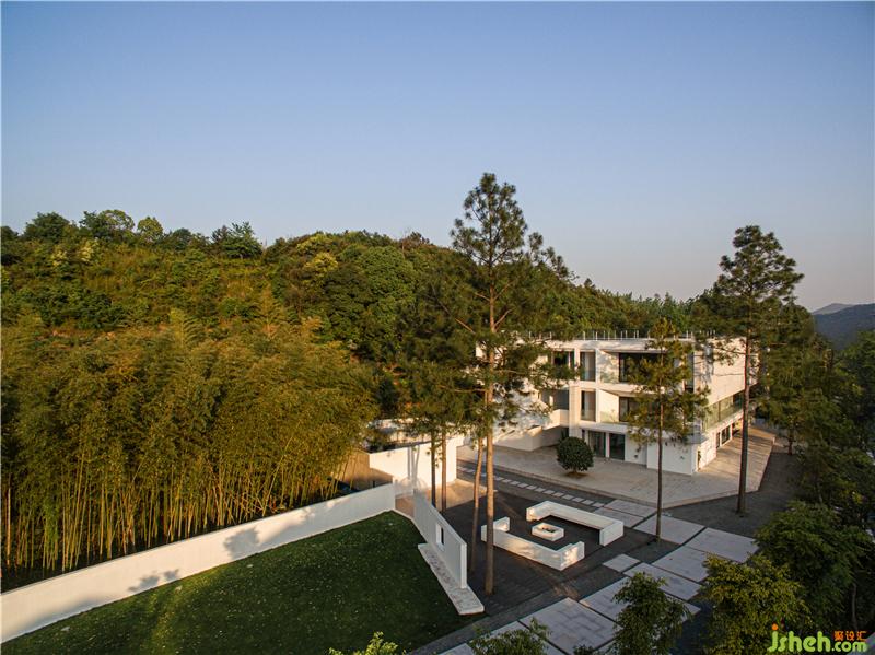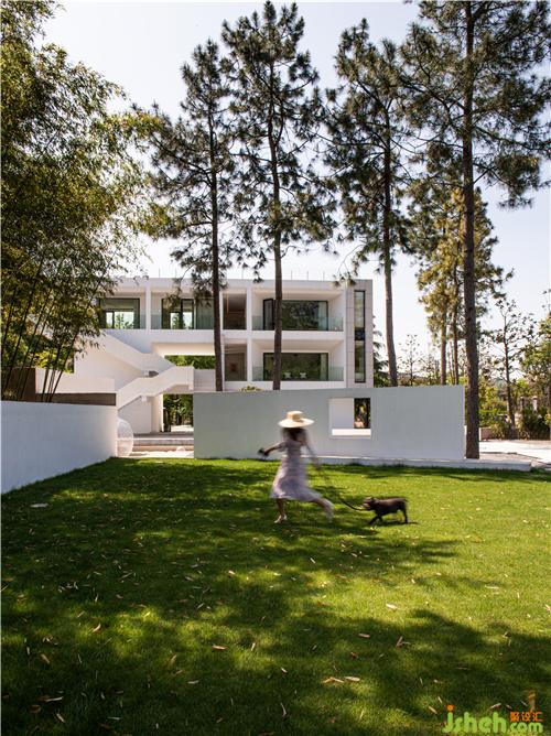 將底層架空,給予建筑通體白色,猶如一片潔白的云朵懸浮在空中,在周圍植物的映襯下散發(fā)出神秘安靜的氣息。