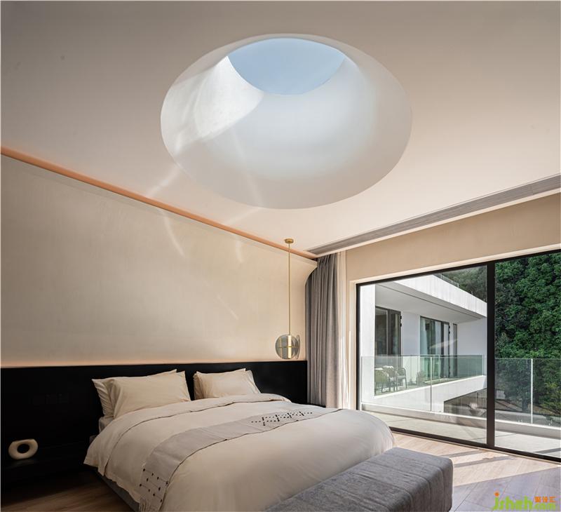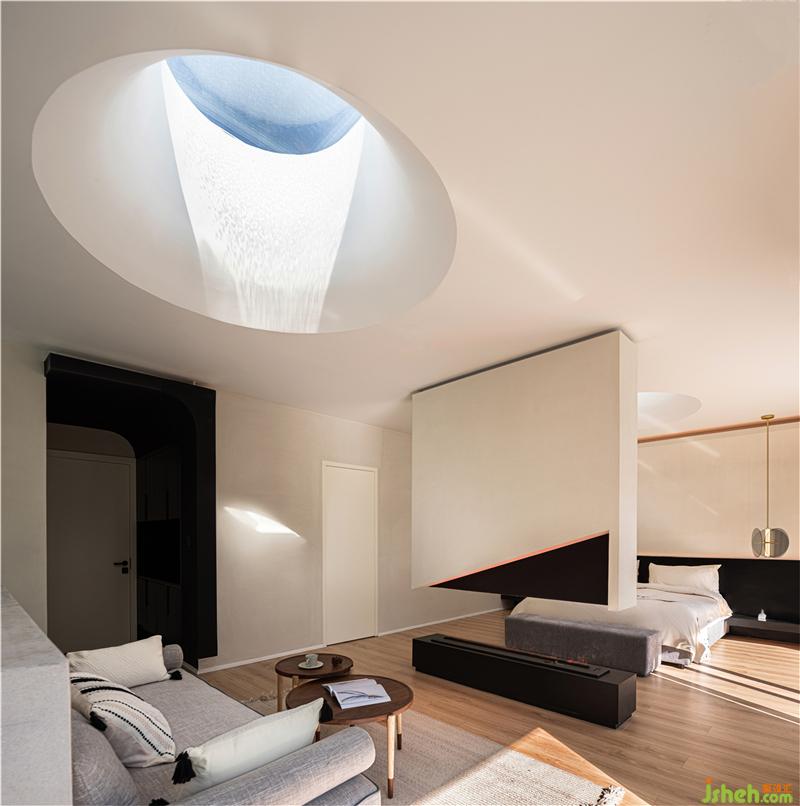 光通過(guò)開(kāi)口的圓形天窗讓照入室內(nèi),光與影的交錯(cuò),仿佛與自然在對(duì)話。