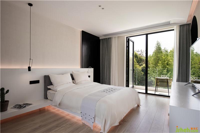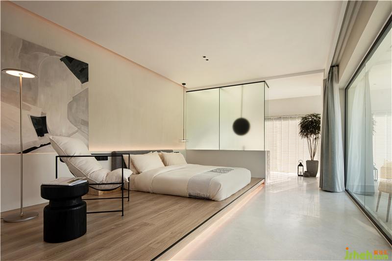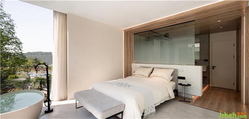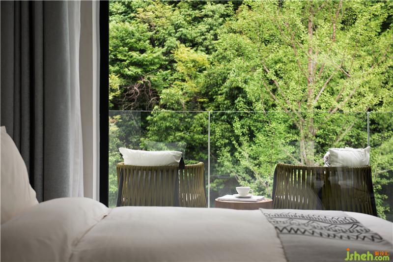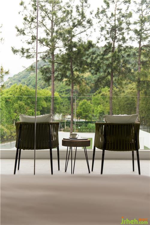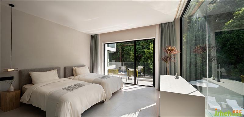 設(shè)計師希望每間房都能映出室外的風(fēng)景,房間有著270°落地玻璃窗,空間變得通透純凈。