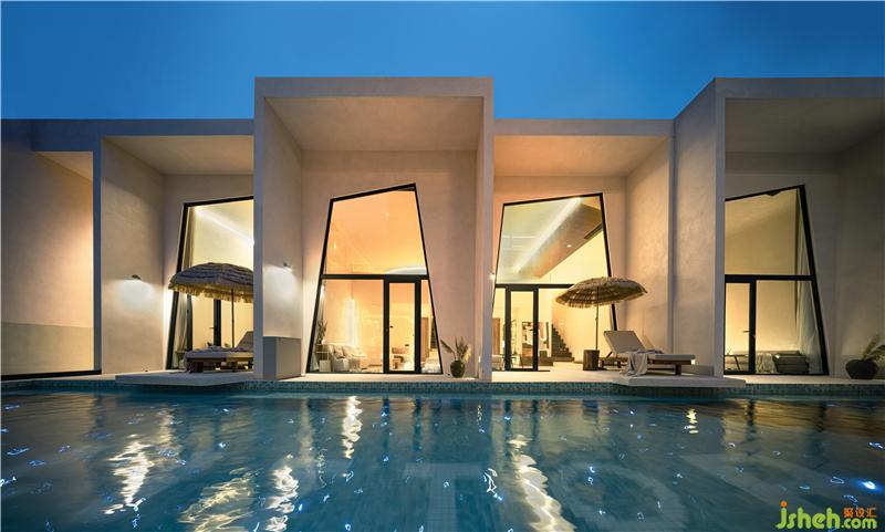 設(shè)計師希望客人可以從房間中直接躍入水中,時刻能與大海進行互動。因此在兩幢客房間建造了一個星空泳池,呼應(yīng)了“海天一色”的概念。
