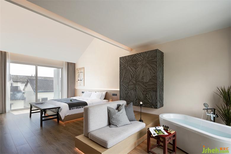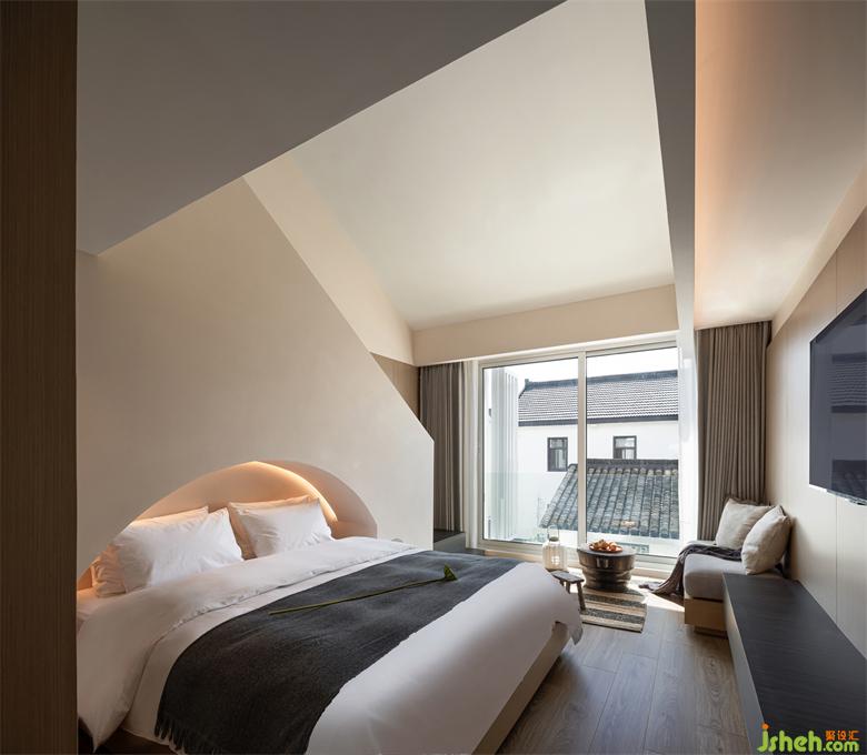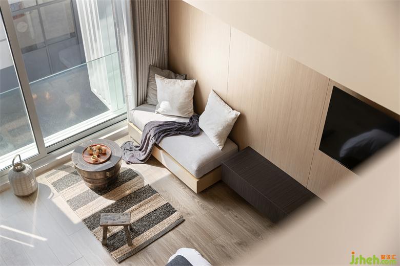 保留原本屋頂?shù)钠旅娼Y(jié)構(gòu),loft房間將空間每一處都利用到極致,燈光與空調(diào)藏入結(jié)構(gòu)中,最大化地讓空間變得極簡(jiǎn)純粹。