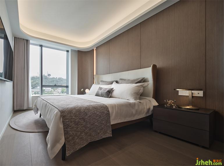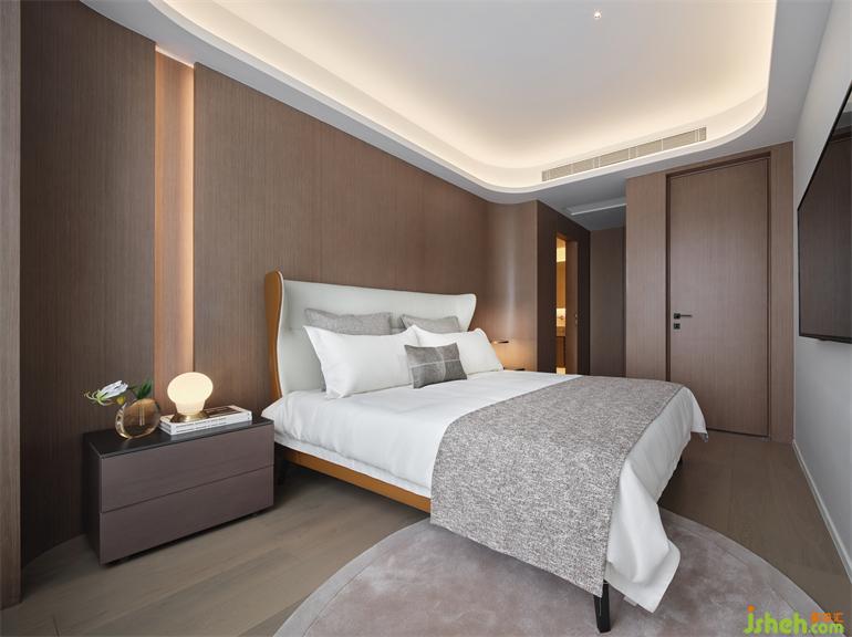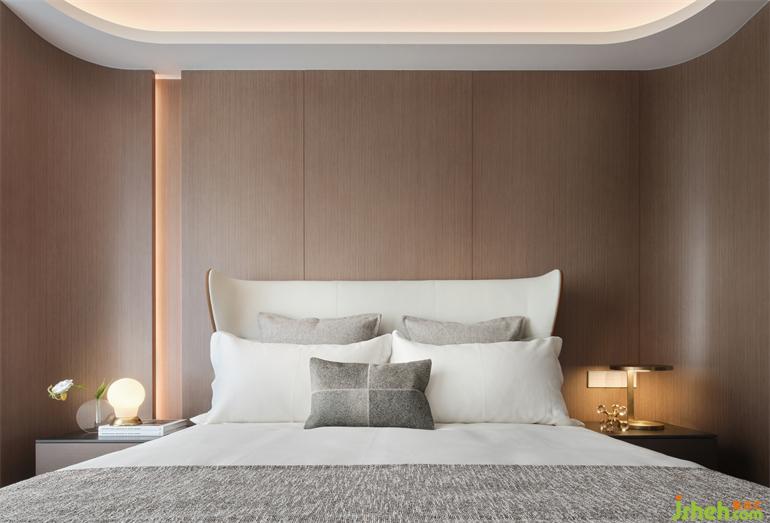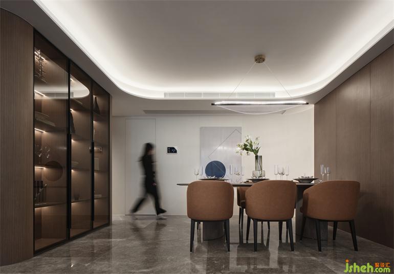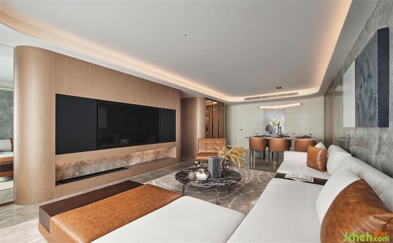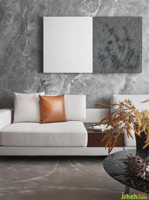 Using a calm wood color with grey marble, the cowhide finish on the sofa gives the space a sense of Italian luxury. The collision of different materials makes the space particularly delicate.