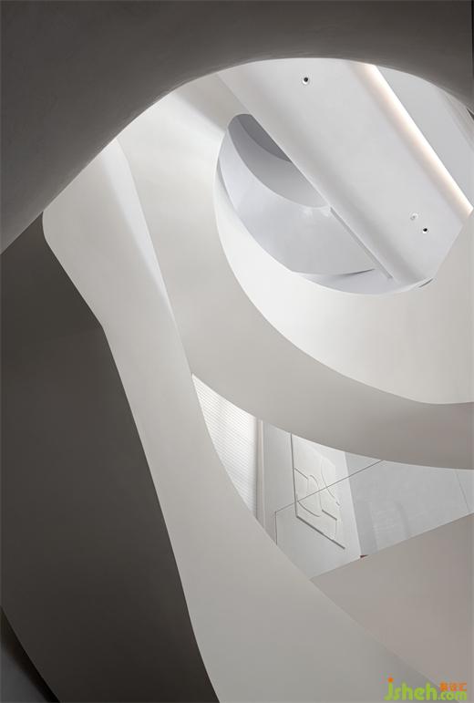 雕塑感的旋轉(zhuǎn)樓梯始終貫穿著整個(gè)住宅,如樹干般承載著空間的生長,光線進(jìn)入室內(nèi),臺州別墅設(shè)計(jì)視覺感受被縱向拉長,打破沉悶的格局,因此更加自由與充滿力量感。