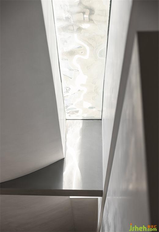 光的造型千變?nèi)f化,是來自大自然的藝術(shù),為居家生活帶來極大的詩意。臺州別墅設(shè)計(jì)師保留原始梁柱,將頂面處理成弧形的建筑體塊,與電視機(jī)墻體產(chǎn)生空間關(guān)系,于此同時(shí)樓板被打通,變成水景天窗,讓光線自由進(jìn)入空間中,隨著水面的波動整個(gè)空間仿佛充滿了光影的律動感。