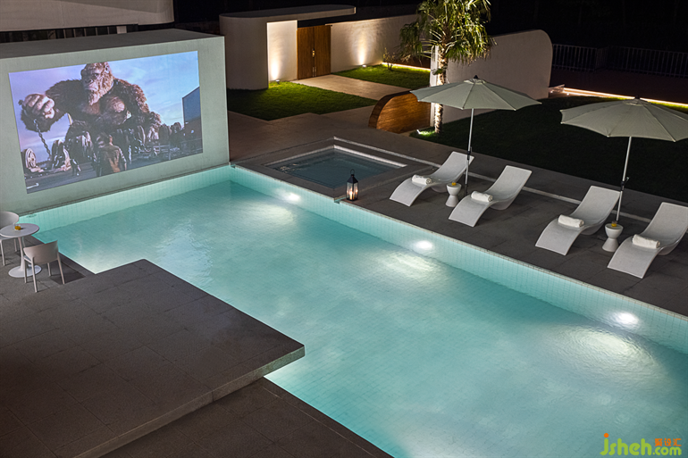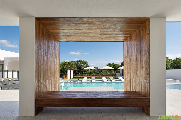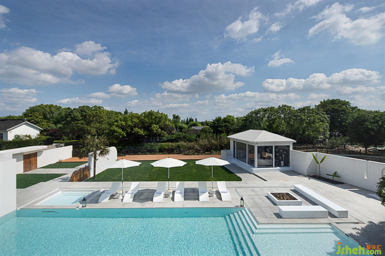 蘇州民宿設(shè)計交錯重疊的泳池被巧妙地通過結(jié)構(gòu)分為淺水區(qū)、深水區(qū)、兒童戲水區(qū)。篝火區(qū)域可以為入住的客人提供更為原始自然的感受。
