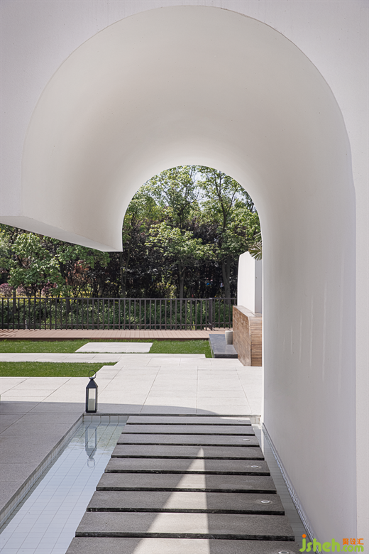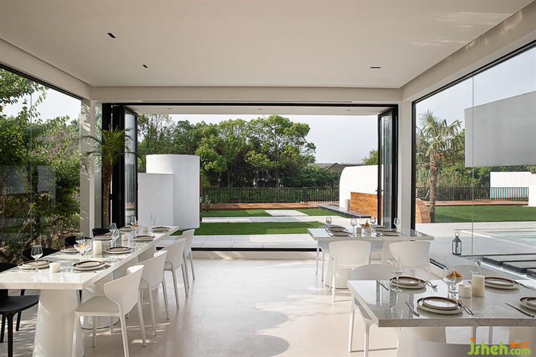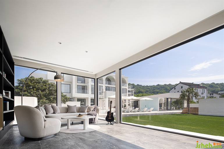 大落地玻璃在建筑中起到了連接室內(nèi)外的功能,蘇州民宿設(shè)計讓室外景色映入空間,空間與自然進一步融合。