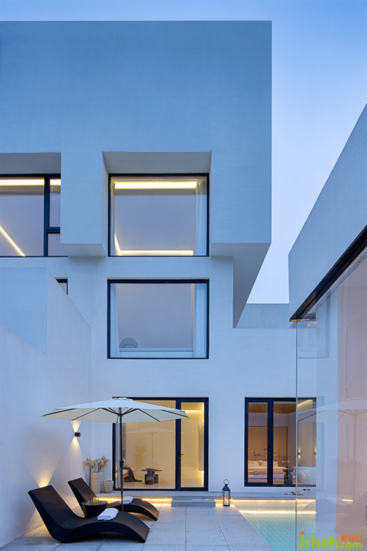蘇州民宿設(shè)計(jì)師在功能性上加入了許多考量,以現(xiàn)代化的生活視角,增設(shè)酒吧、泡池、廚房等空間,進(jìn)一步融入美好的度假體驗(yàn)。