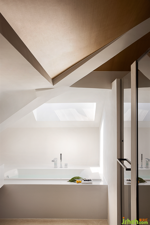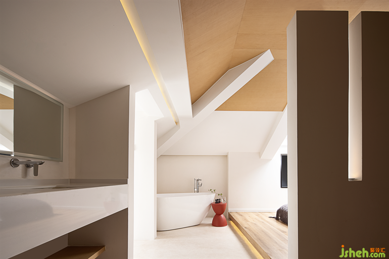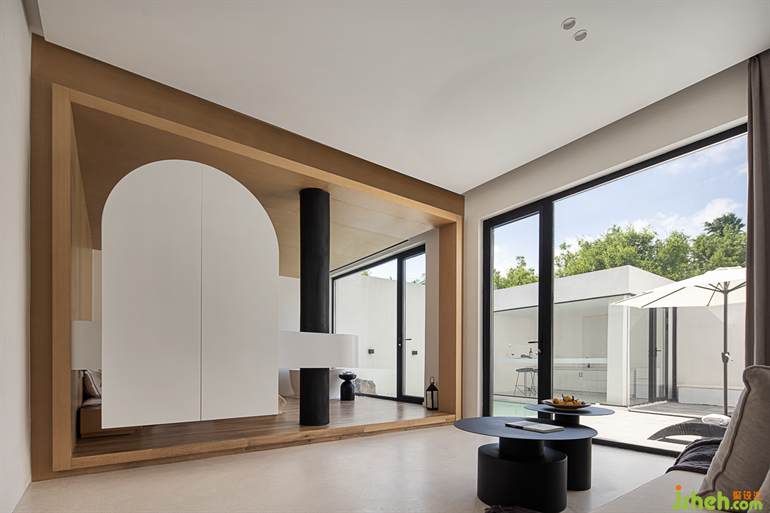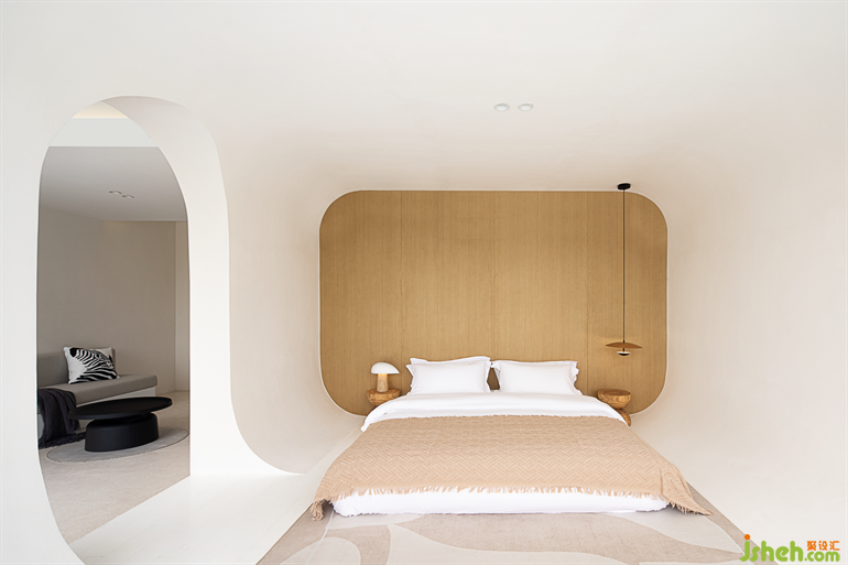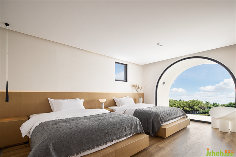 解構(gòu)樹屋造型,巧妙地分割出套房的空間,猶如睡在海邊木屋般,蘇州民宿設(shè)計為空間增添了趣味性。