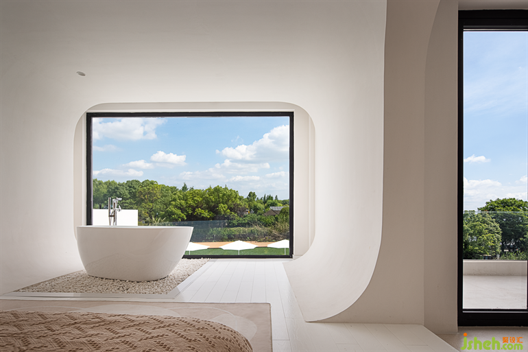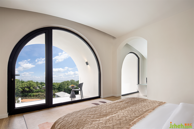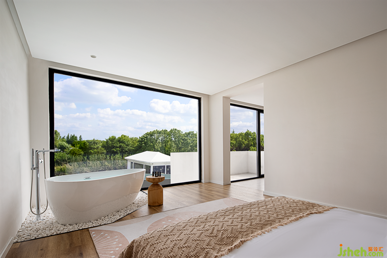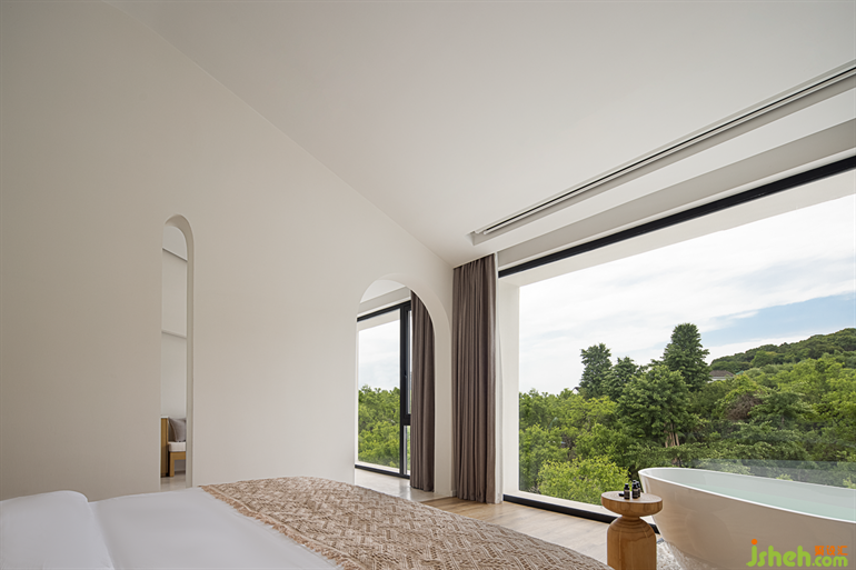 蘇州民宿設(shè)計大面積的落地玻璃讓整個空間向海島開放,滿足了人們對自然與純粹的向往。