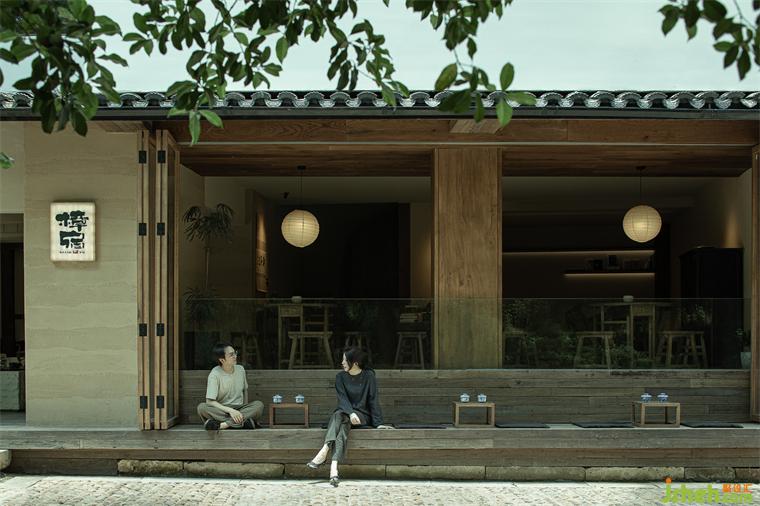 茶室設(shè)計建筑外部白墻呼應(yīng)著周邊古色古香的歷史建筑,保留傳統(tǒng)意向的同時又形成差異感,碰撞出一個新的文化坐標(biāo),在江南的鄉(xiāng)土間尋找屬于自己的生活節(jié)奏。