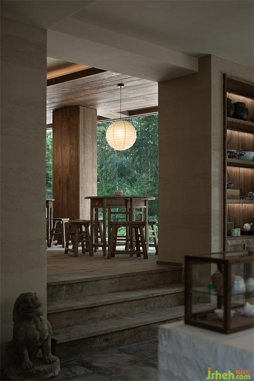 現(xiàn)代化的茶室設(shè)計(jì)手法最大限度地打開窗口,與周邊自然風(fēng)景形成互動(dòng),空間被重新梳理與重塑,形與意的美再次體現(xiàn)。