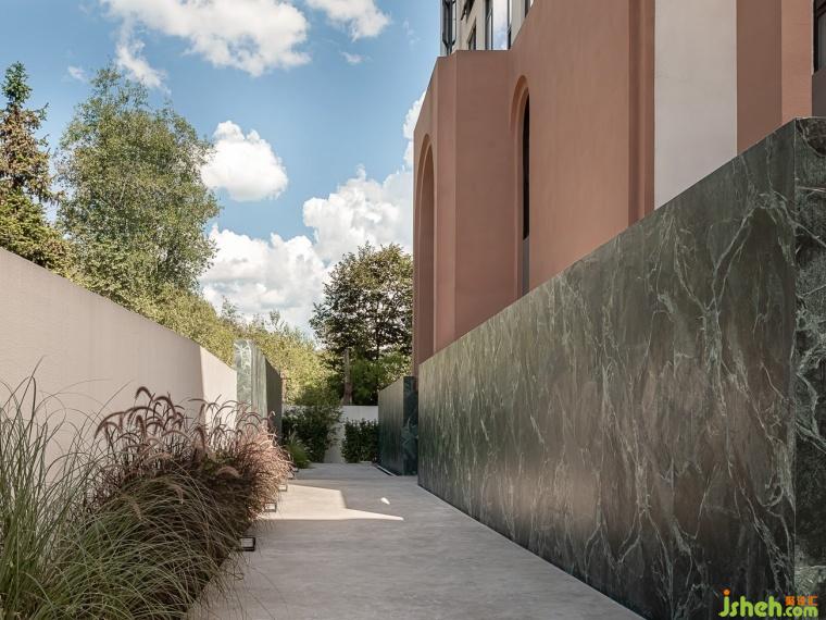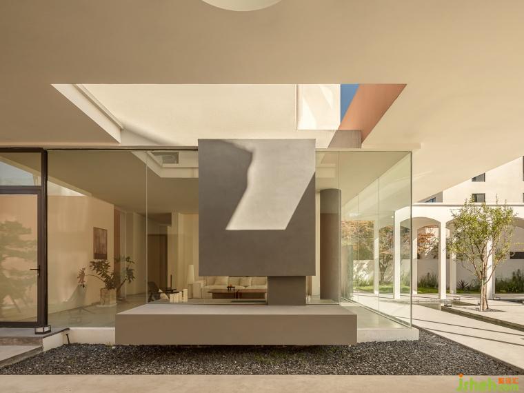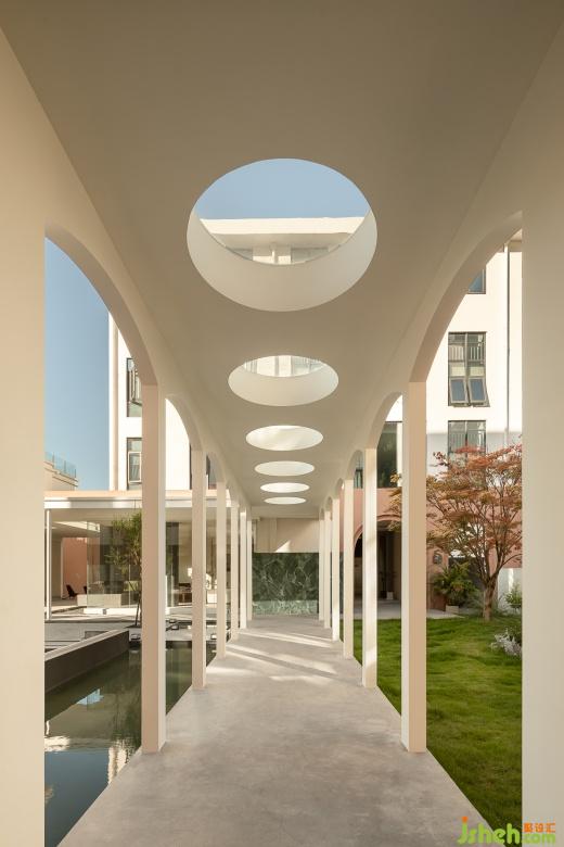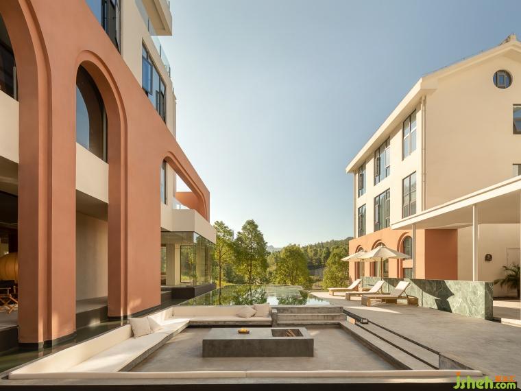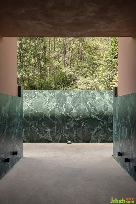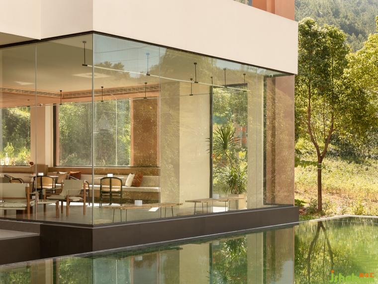 ??流?—建筑猶如三座??,??順延在中?匯聚成了湖泊泳池,涌?湖泊中的?順勢(shì)?下形成了瀑布。