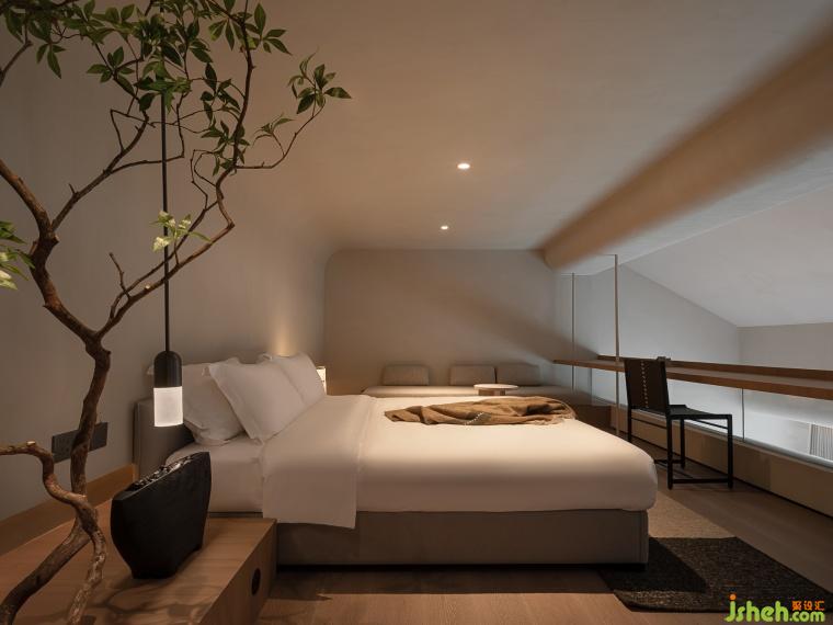 The integrated design of the desktop and the bedside makes efficient use of space and brings great convenience to guests. The designer chose a uniquely shaped incense drum, and the fragrance it emits makes the room more elegant and cozy, full of warmth.