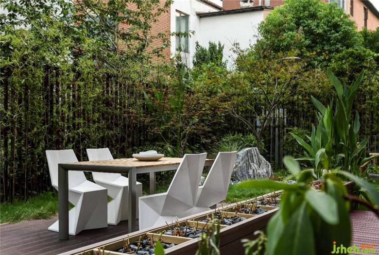 似漫不經(jīng)心的點綴了幾件家具于綠意盎然之中,著實奪目。