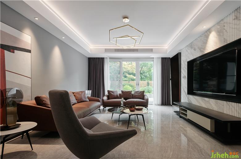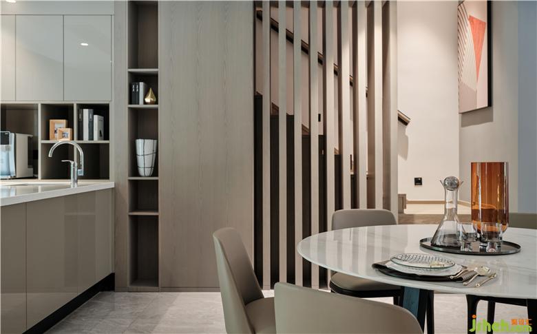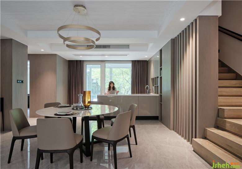 本案面積400㎡,蘇州別墅設計整體色調(diào)以白色為主,佐以黑色和原木色為點綴。大面積粉刷白色乳膠漆,黑色金屬門套和踢腳線強調(diào)現(xiàn)代主題,黑與白的碰撞與交織,加上自然的原木色作為調(diào)和,給人安靜、沉穩(wěn)和舒適的視覺享受。