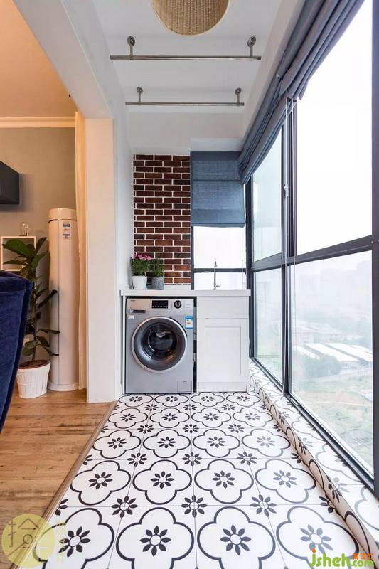 因?yàn)闆]有生活陽臺,所以休閑陽臺也兼具晾曬的功能,但美觀還是很重要的。