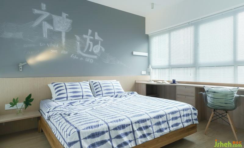 床頭是黑板墻,可以用無(wú)塵粉筆上面寫(xiě)寫(xiě)畫(huà)畫(huà),床頭靠背是現(xiàn)場(chǎng)做的,可以發(fā)光,適合晚上打開(kāi)窗邊是定制的寫(xiě)字臺(tái),因?yàn)榫嚯x的原因做了不規(guī)則處理床頭柜是用的隔板,更符合整體氛圍整體空間也是做的無(wú)主燈設(shè)計(jì),壁燈+筒燈的處理,可以讓空間更簡(jiǎn)單