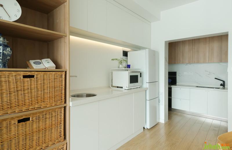收納是這個(gè)家不變的主題,主人信奉‘?dāng)嗌犭x’的生活態(tài)度,半開(kāi)放的廚房將西廚空間為之融合西廚的小盆子可以做一些沙拉,解決一些簡(jiǎn)單的食物處理工作操作臺(tái)簡(jiǎn)潔不冗余,是一定要實(shí)現(xiàn)的廚房生活美學(xué)