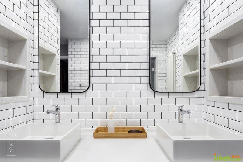 定制的雙人洗面臺運(yùn)用了壁龕來進(jìn)行置物