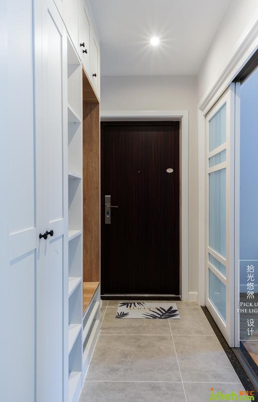 有奔波之后回家可以坐著換鞋的卡座,到家就希望你解放辛苦的雙手,設計了鏤空隔板可以放包包和鑰匙,對面是玻璃推拉門,過道有光就不自覺卸下了一身的疲倦