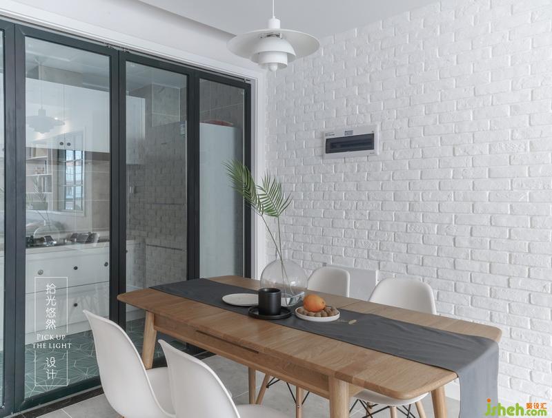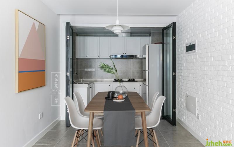 封了原本生活陽臺與廚房之間的門,才讓廚房用起來更順手,透明玻璃做的折疊門能完全打開,在餐廳搭配了明亮的裝飾畫,認認真真陪在家人身邊吃每一頓飯