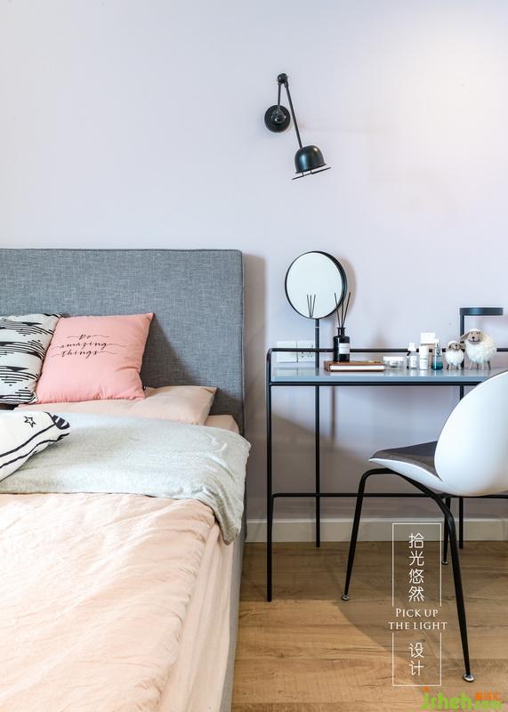 背景墻用了灰紫色,整理起來很輕松,不宣揚(yáng)的色調(diào)很適合每一個(gè)溫柔的夢(mèng), 梳妝臺(tái)呈現(xiàn)出一種簡(jiǎn)潔硬朗感,瓶瓶罐罐們也不經(jīng)意的有序排列了
