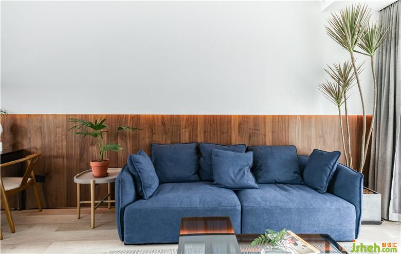 裝修公司在客廳采用的是天然黑胡桃木飾面板作為護(hù)墻板,電視柜為現(xiàn)場澆筑的水泥臺(tái),氛圍燈帶,滿足觀影微光照明,客廳無主燈的設(shè)計(jì),減少打理衛(wèi)生的難度與次數(shù)