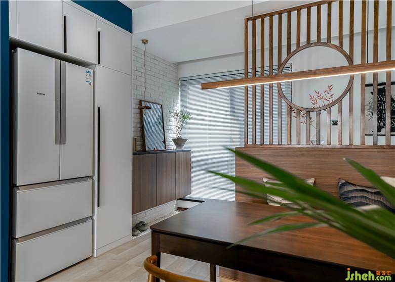 利用卡座制作了玄關(guān)與過道分離,結(jié)合了中式禪意的一些元素,讓空間隔而不斷