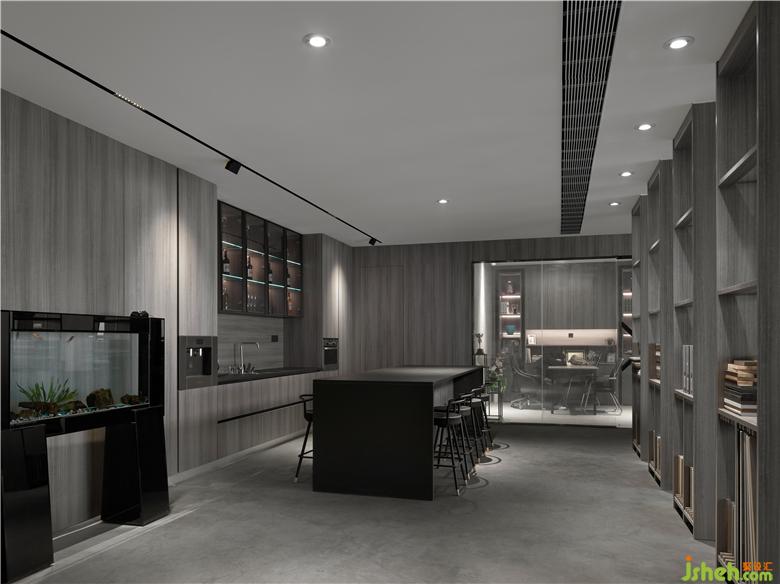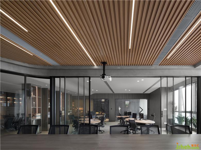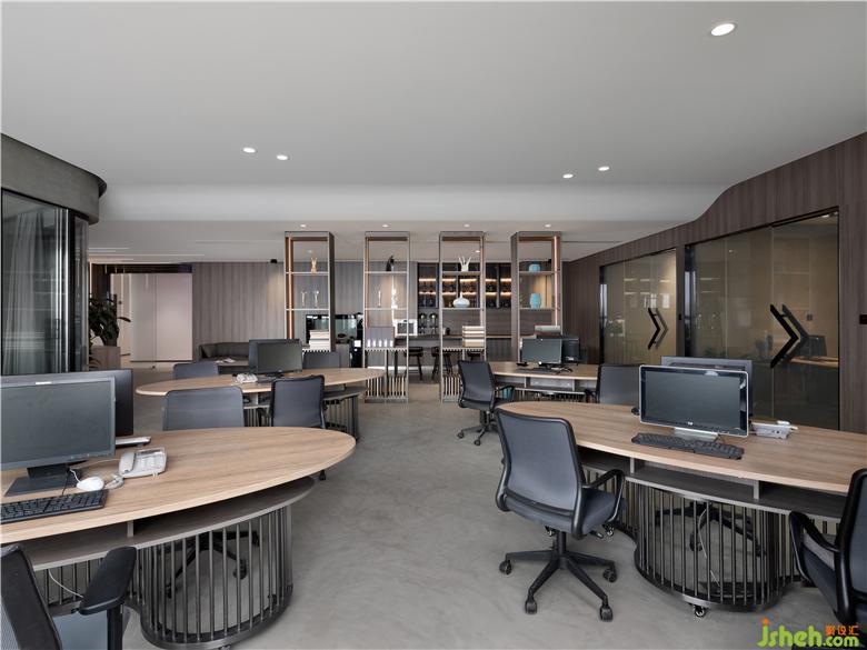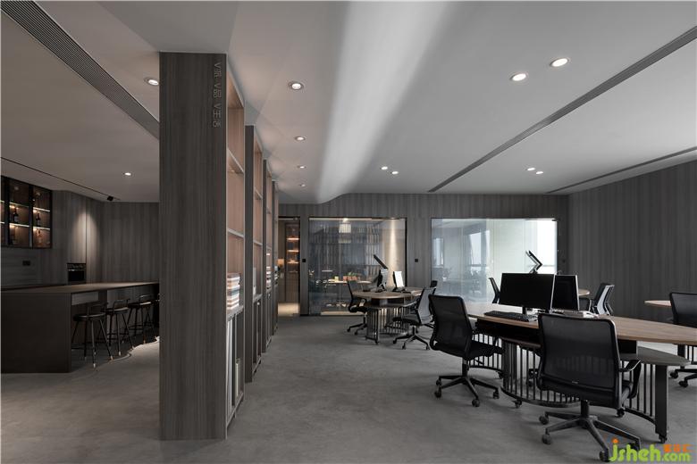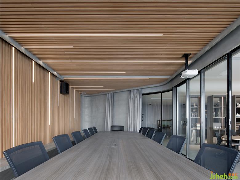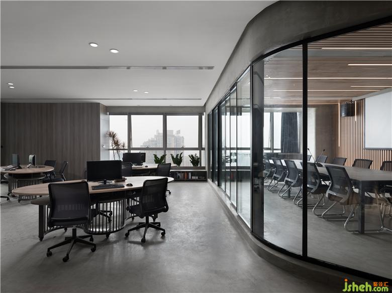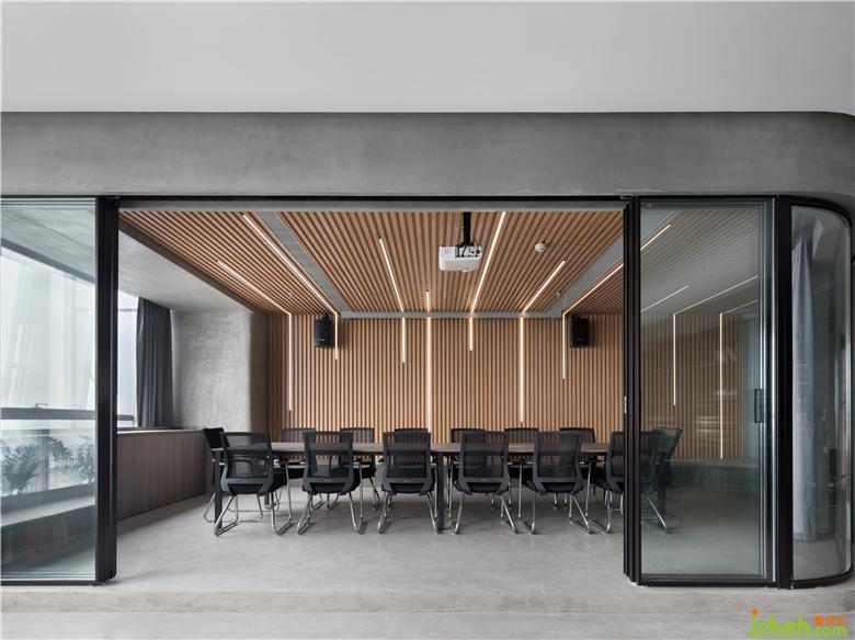 按照傳統(tǒng)的會議室設(shè)計,空間不光會被壓縮到只能用來作為會議室使用再無其他功能性空間,所以使用聯(lián)動門形成一個可封閉可開放的會議空間,需要大規(guī)模會議時可將整個玻璃門打開形成全開放空間,當(dāng)需要進行小規(guī)模會議時,則可拉上聯(lián)動門形成封閉空間。辦公室設(shè)計